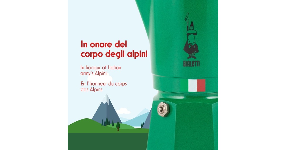 Mit der Break Alpina von Bialetti gelingt die Zubereitung eines traditionellen italienischen Espresso oder Mokka innerhalb von Minuten. Diese Variante der Break kocht bis zu drei Tassen in einem Durchgang und kommt im einzigartigen Design des italienischen Gebirgsjägerkorps daher – der Deckel und die Feder sind dem charakteristischen Hut der Gebirgsjäger nachgebildet. Die Break Alpina ist aus einer Aluminiumlegierung hergestellt, die sowohl auf Gasherd als auch auf Herdplatte verwendet werden kann.Art.-Nr.: 1752132