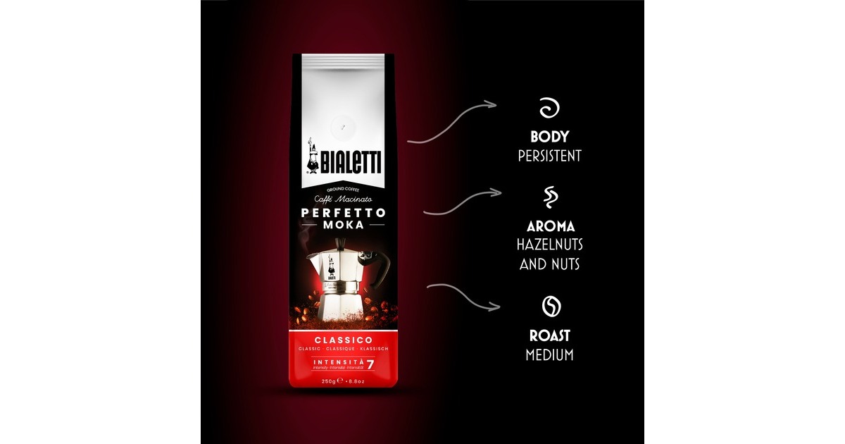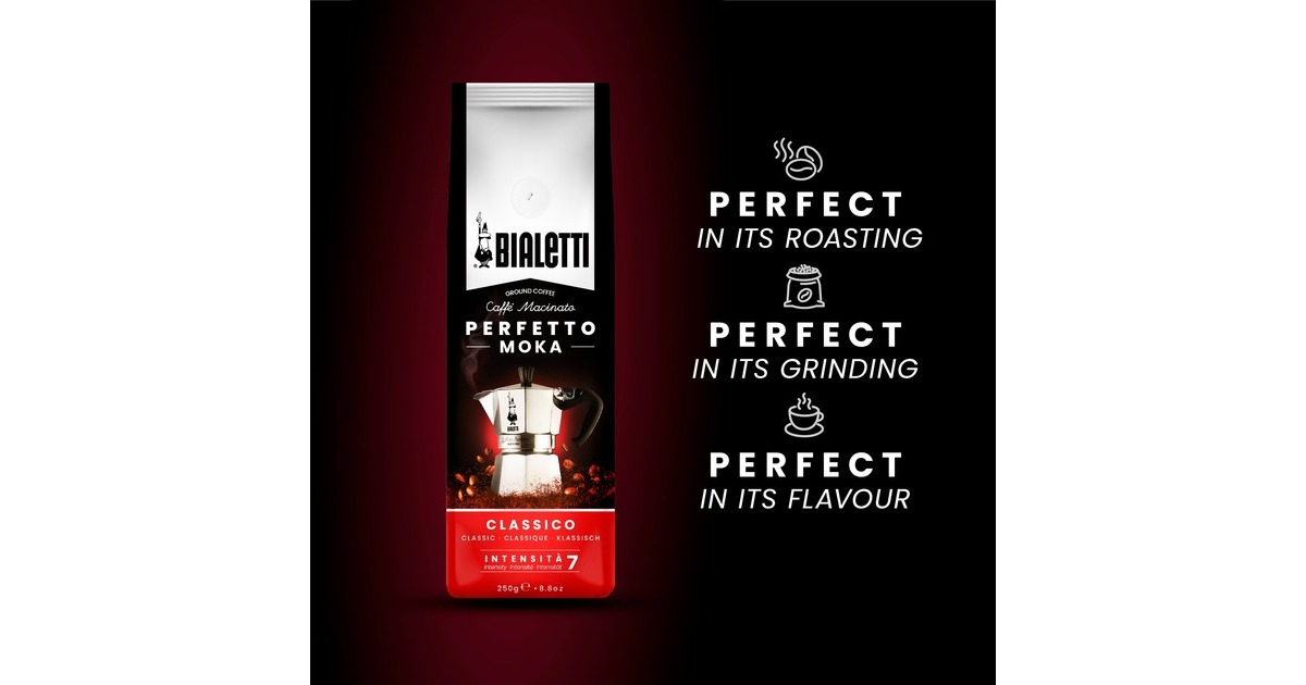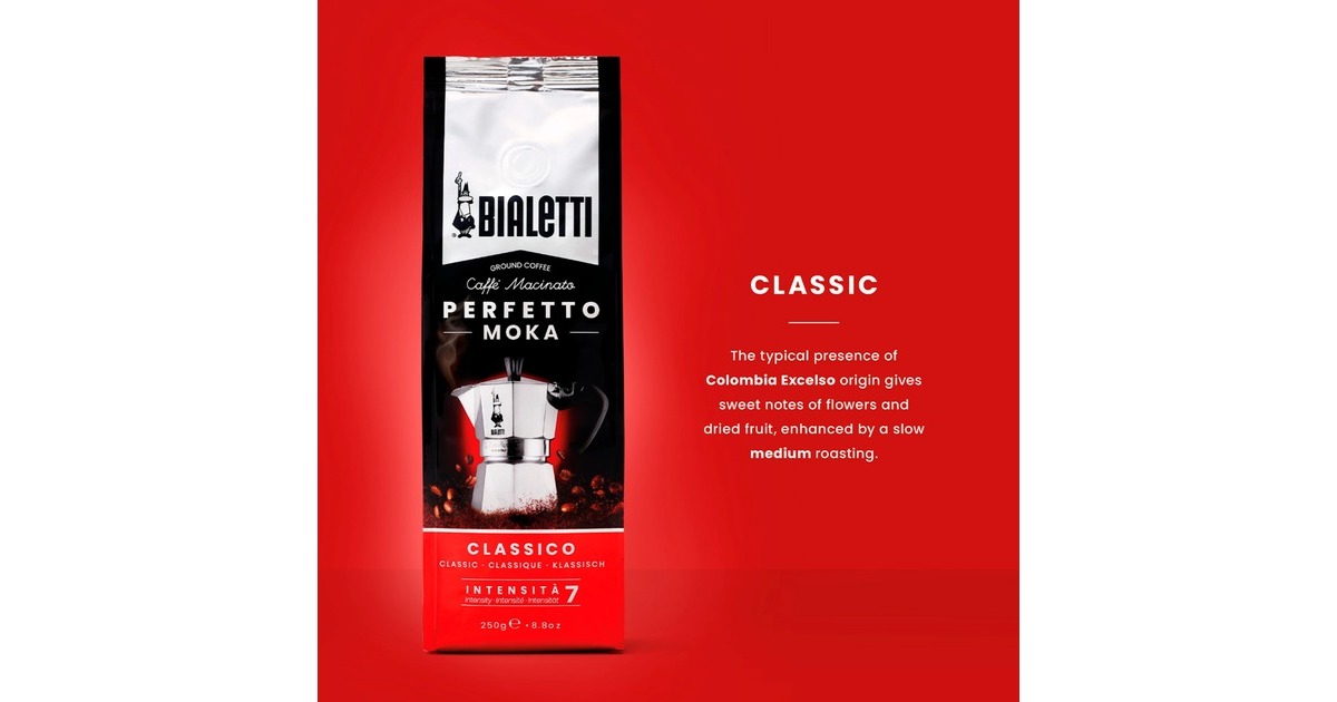 Dank Bialettis Erfahrung in der Welt des Kaffees entsteht der perfekte Kaffee für Espressokocher: der Perfetto Moka. Perfekt in der Röstung. Perfekt in der Mahlung. Perfekt im Geschmack. Bei Perfetto Moka Classico handelt es sich um eine sanfte und aromatische Mischung. Die charakteristische Präsenz des Ursprungs Colombia Excelso verleiht süße Noten von Blüten und Trockenobst, die durch eine langsame und mittlere Röstung hervorgehoben werden. Der weiche Beutel und das spezielle Aromakonservierungsventil bewahren immer die Frische des Kaffees.Art.-Nr.: 1769701