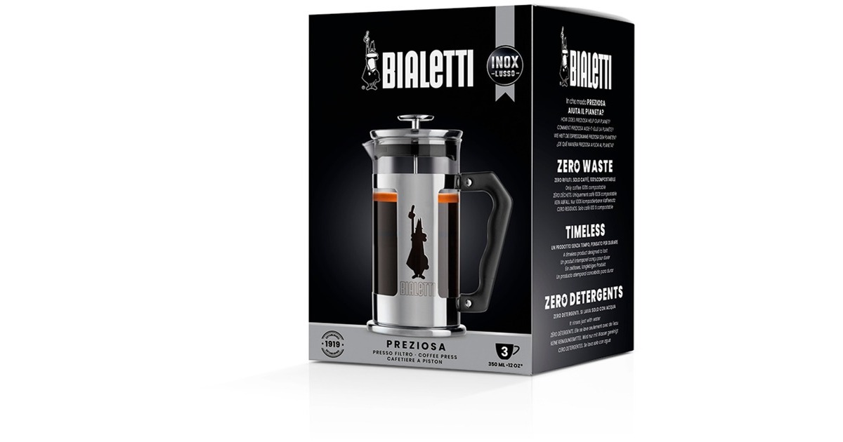 Der elegante Stil sowie das moderne Design des Bialetti Preziosa Kaffeebereiters heben sich von der Masse ab und verleihen dem gedeckten Frühstückstisch das gewisse Extra. Mit diesem Kaffeebereiter (auch French Press genannt) genießt man Kaffee so stark und aromatisch wie man es möchte. Das heiße Wasser zieht das Beste für den Kaffee aus dem Kaffeepulver und der Papiergeschmack eines Filters bleibt erspart. Auch werden die feinen Aromaöle des Kaffees nicht im Papierfilter aufgesaugt. Feinschmecker schwören auf diese Zubereitungsart des Kaffees. Deckel und Halterung des Preziosa Kaffeebereiters bestehen aus rostfreiem Edelstahl 18/10 und der Behälter aus hitzebeständigem Borosilikatglas fasst bis zu 0,35 Liter Kaffee.Art.-Nr.: 1525001