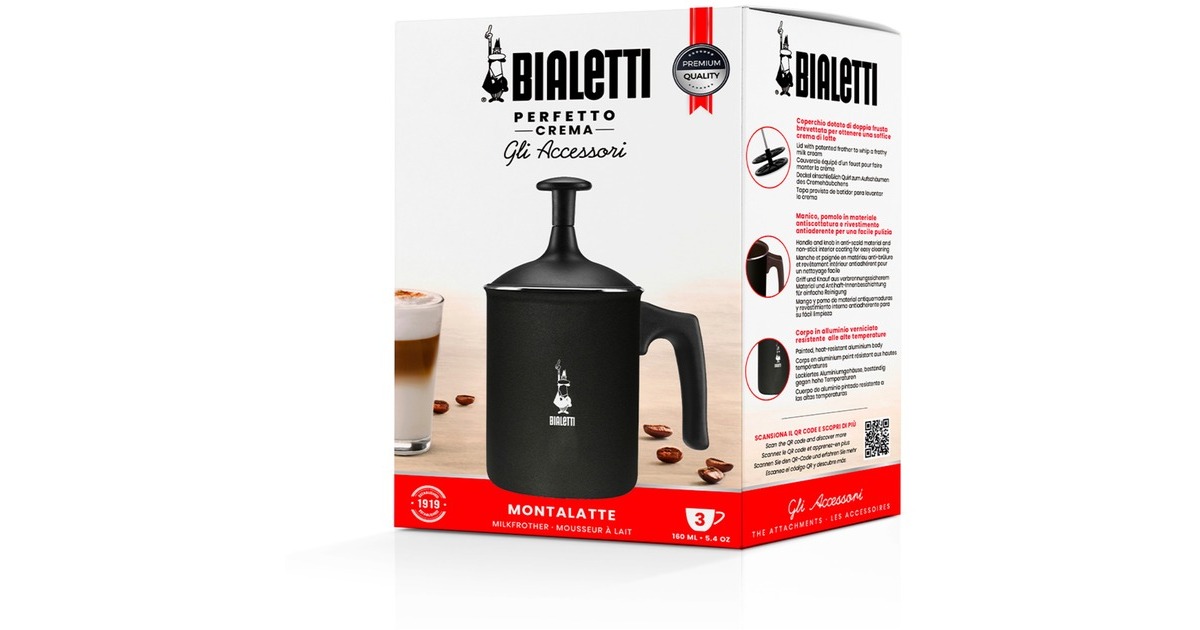 Tutto Crema, der manuelle Milchaufschäumer aus dem Hause Bialetti, überzeugt durch erstklassiges Können! Mit dem Kult-Design von Bialetti für den vollendeten Genuss von herrlichem Espresso und Cappuccino wie in Italien in Sekundenschnelle, verzaubert Tutto Crema durch Geschmack – doppelt so cremig und schnell – ein Grund, warum der Tutto Crema so beliebt ist. Mit dem doppelten und besonders feinmaschigen Siebeinsatz erzielt Tutto Crema extra schnellen, cremigen und üppigen Milchschaum – wie der Name schon sagt. Der Boden sorgt für optimale Wärmeleitung und ist für alle Herdarten, außer Induktion, geeignet. Dank der Antihaftbeschichtung brennt die Milch nicht an und sie erleichtert die anschließende Reinigung.