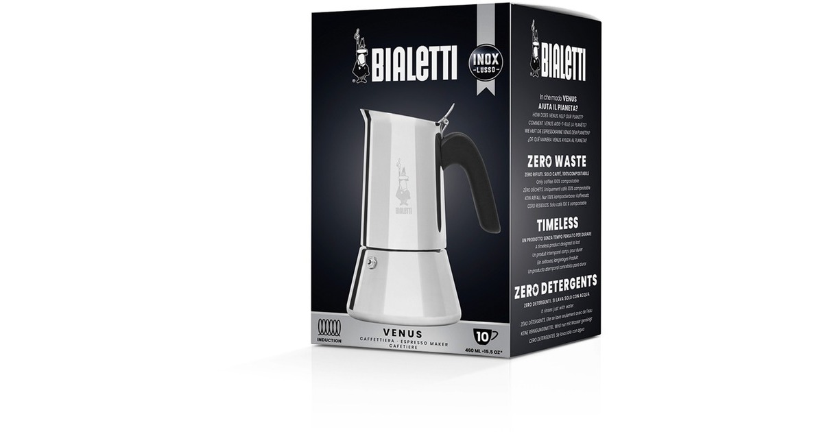 Die Bialetti Venus ist ein Espressokocher mit klaren Linien und harmonischen Formen. Mit ihr gelingt die Zubereitung eines traditionellen italienischen Espresso oder Mokka innerhalb von Minuten. Diese Variante der Venus kocht bis zu zehn Tassen in einem Durchgang. Der Kessel der Venus besteht aus poliertem Edelstahl und man kann man sie auch auf Induktionsherden verwenden.Art.-Nr.: 1752260