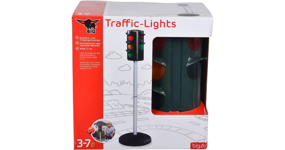Sicher durch den Straßenverkehr - mit BIG lernen schon die Kleinsten die Ampelregelung spielend leicht. Denn die Kinderampel BIG-Traffic-Lights zeigt den begeisterten BIG-Bobby-Car-Fahrern und Fahrerinnen, wann sie Vorfahrt haben und wann sie halten müssen. Automatisch wechselt die stabile Verkehrsampel ihr Licht im 30 Sekundentakt von Rot auf Grün. Die Ampel ist im Handumdrehen montiert. Der Betrieb erfolgt über drei handelsübliche Mignon-Batterien. Und wenn die Verkehrsteilnehmer einmal vergessen sollten, die Ampel abzuschalten, wird energiesparend nach einer Stunde die Stromzufuhr automatisch unterbrochen.Art.-Nr.: 1195267