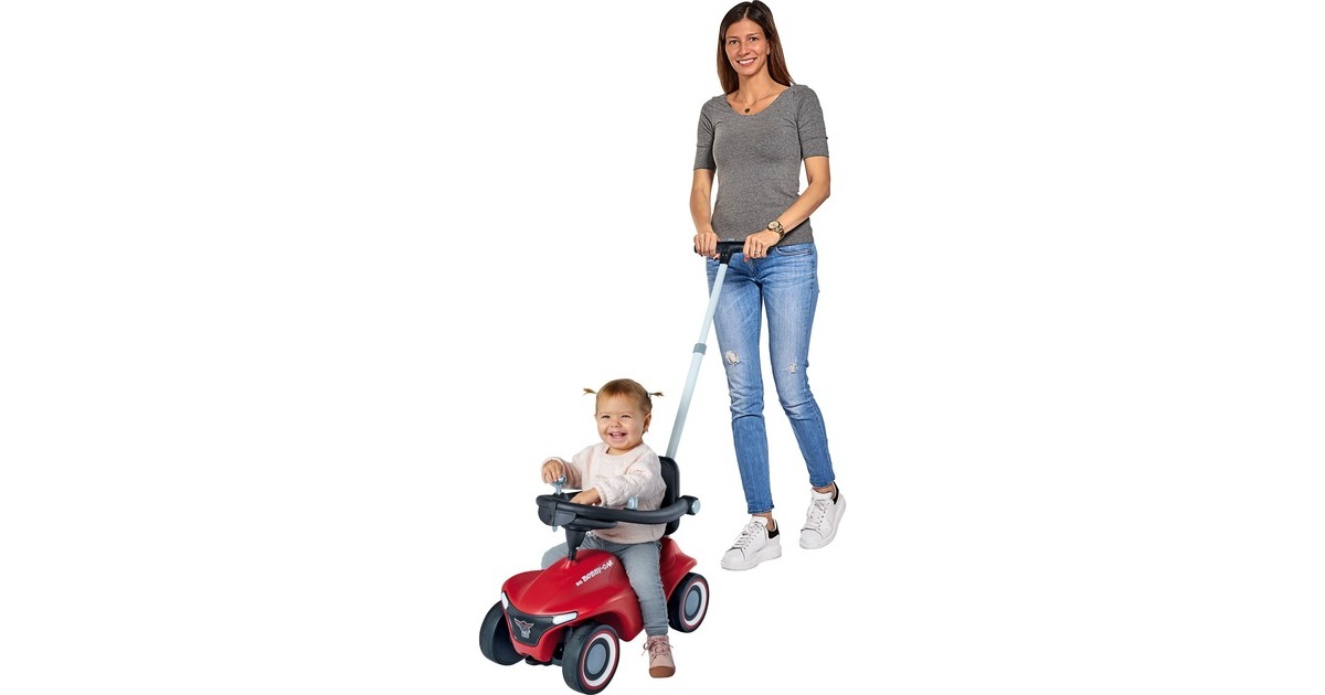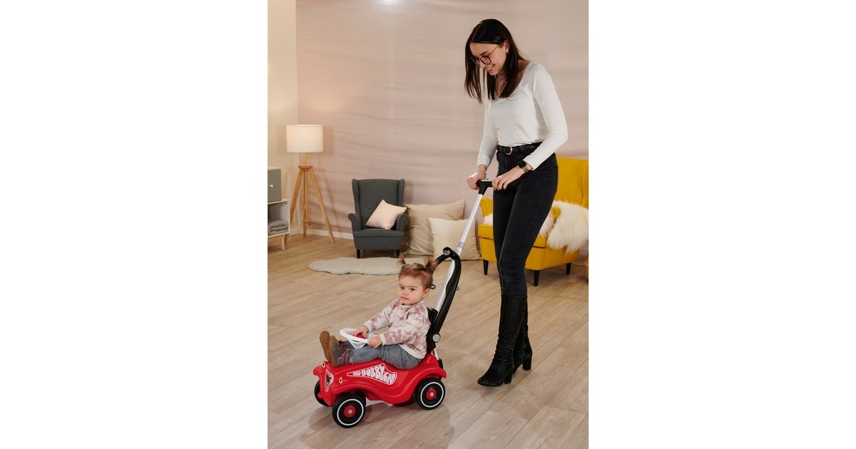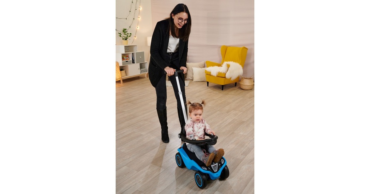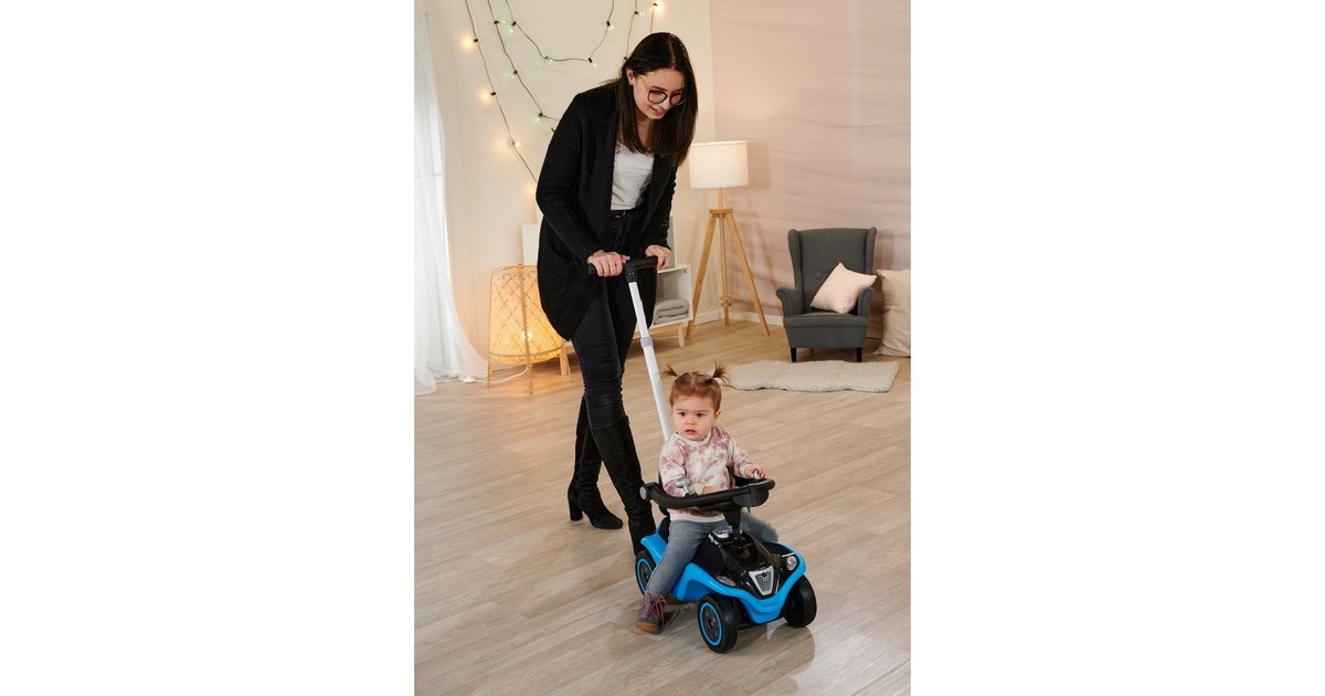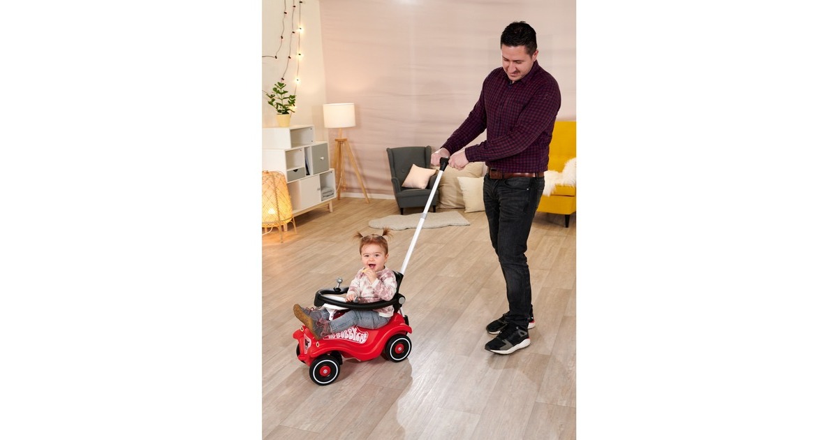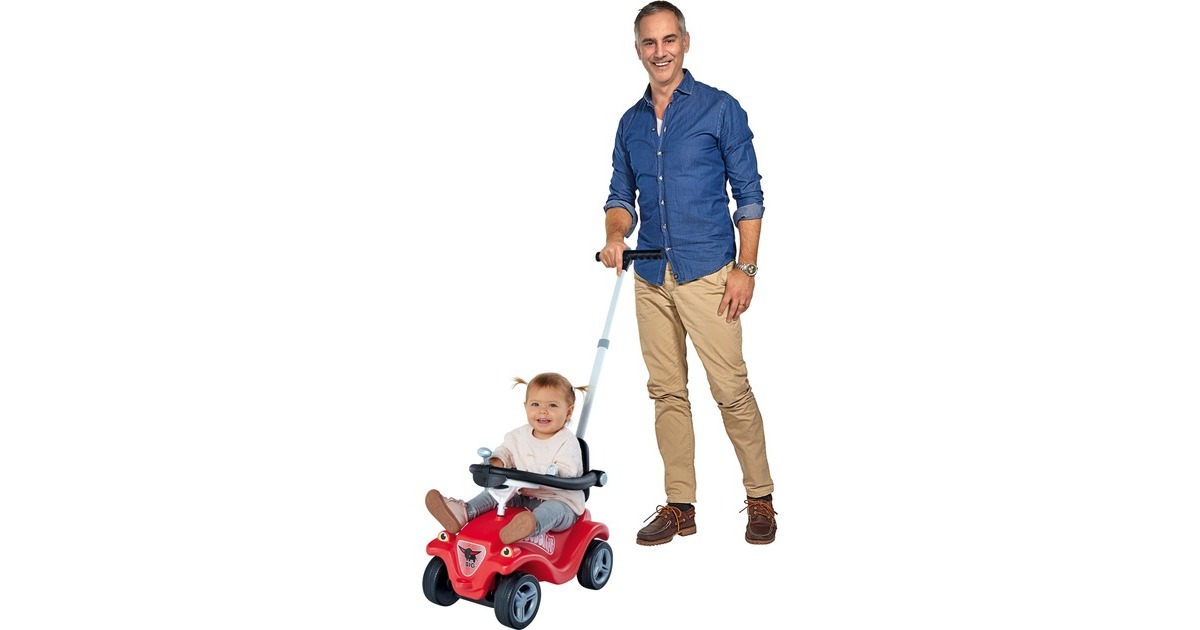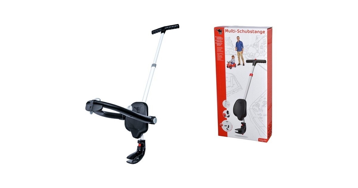 Mit der BC-Premium-Schubstange kann der Fahrspaß der Kleinen von den Erwachsenen unterstützt und, wenn notwendig, in richtige Bahnen gelenkt werden. Es genügt ein kurzer Druck auf den Griff und schon lässt sich der Kurs des kleinen Rennfahrers sicher bestimmen oder korrigieren. Durch den mitgelieferten Adapter wird das Lenkrad festgestellt, so dass nur noch mit der Schubstange gelenkt werden kann. Was die Premium-Schubstange von den anderen Schubstangen von BIG unterscheidet, ist der bewegliche Seitenschutz. Er hält die kleinen Rennfahrer an Ort und Stelle. Auch wenn der kleine Passagier oder die kleine Passagierin einfach mal nur gemütlich geschoben wird und am Steuer einnickt oder das Gleichgewicht verliert, verhindert der Seitenschutz einen Sturz und sorgt so für noch mehr Sicherheit. Dadurch sind dann auch längere Strecken einfach und sicher zu bewältigen. Wird der Seitenschutz mal nicht benötigt, kann er einfach hochgeklappt und an der Schubstange befestigt werden. Die BC-Premium-Schubstange hat neben praktischen Funktionen auch spielerische Features: Schalthebel und Schlüssel an den Seiten sorgen für zusätzliche Spielmöglichkeiten. Die integrierte Rückenlehne bietet den Kindern zusätzlichen Halt und mithilfe des neuen ergonomischen Griffs ist auch eine zweihändige Steuerung möglich. Dies erleichtert das Fahren nicht nur für die Kleinen, sondern macht es auch für die Erwachsenen komfortabler. Das leicht bedienbare Teleskopgestänge ist 4-fach höhenverstellbar (von 88 cm - 107,5 cm). Die Montage erfolgt sehr einfach mit einem an der Schubstange bereits fixierten Kupplungsstift.Art.-Nr.: 1788634