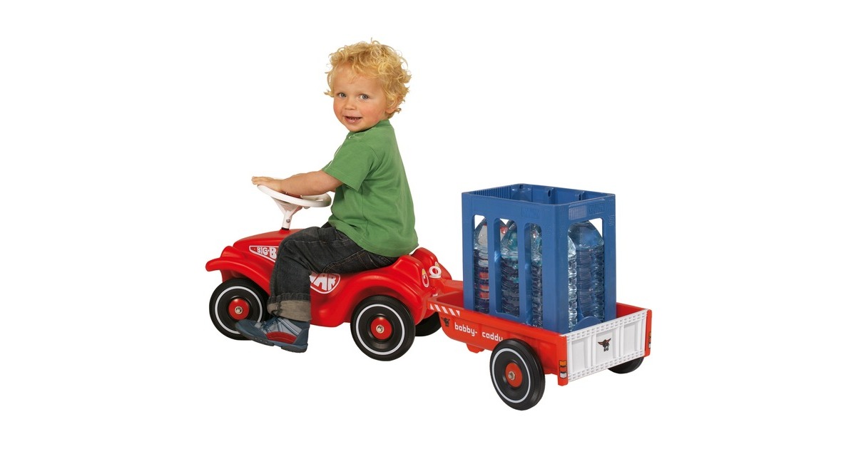 Der BIG-Bobby-Caddy in knalligem Rot ist ein kleines Platzwunder. Der robuste Anhänger überzeugt durch seine große Ladefläche mit 8 Liter Ladevolumen. Damit können die kleinen Fahrer nicht nur Spielsachen transportieren, sondern auch beim Einkaufen den Wasserkasten oder schwere Einkaufstüten nach Hause fahren. Und falls die Pfoten der vierbeinigen Freunde zu schwer werden, ist der BIG-Bobby-Caddy das passende Transportmittel für den besten Freund der Kleinen. Für lange und sperrige Ladegüter lässt sich zudem die Ladeklappe des BIG-Bobby-Caddy abnehmen.