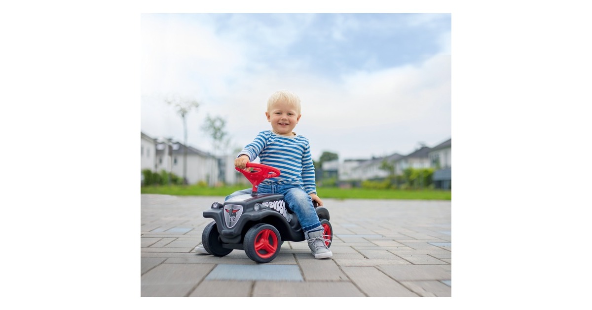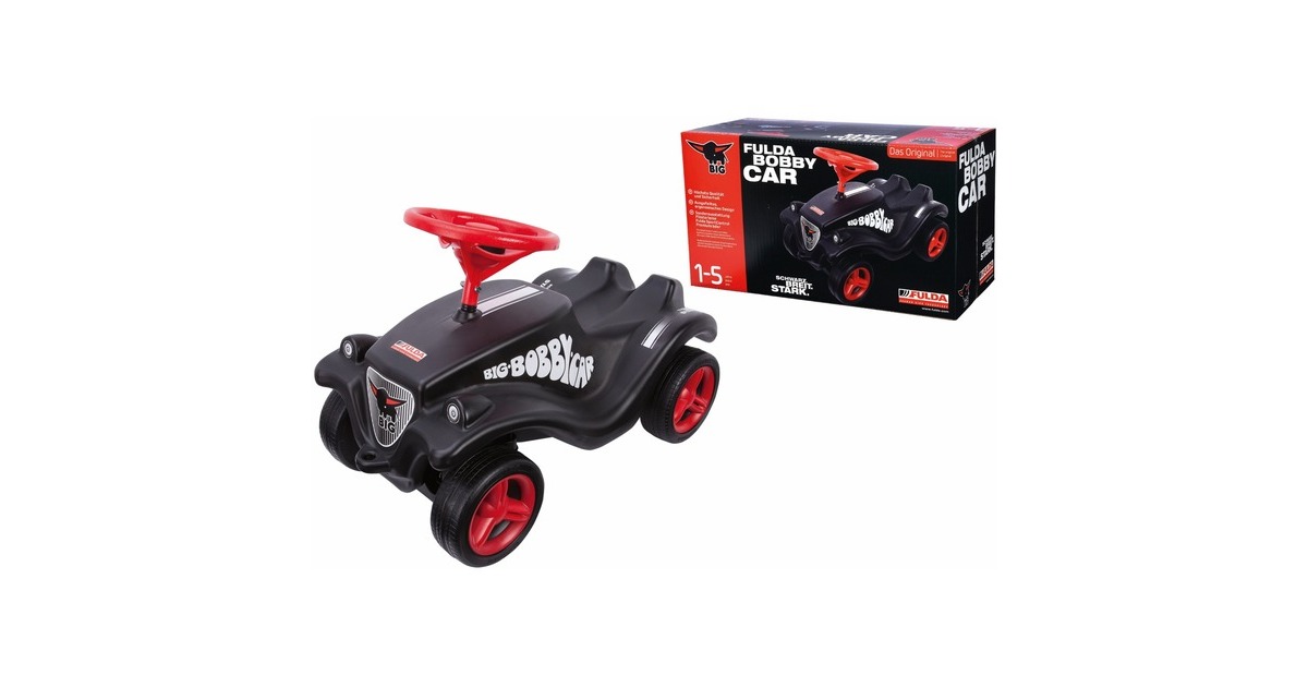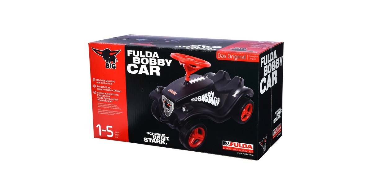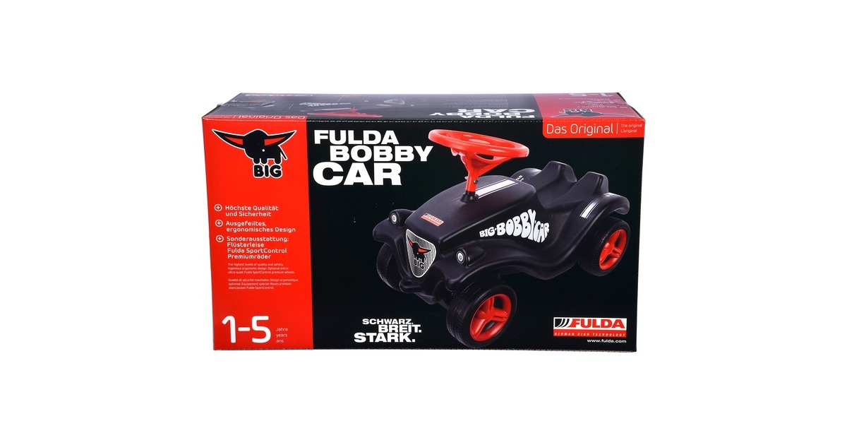 Um dieses rasante Auto wird jeder kleine Nachwuchsfahrer beneidet: Das Fulda-Bobby-Car in edlem Schwarz mit rotem Lenkrad und original Fulda-Aufklebern ist der Hingucker im Kinderzimmer und auf jedem Spielplatz. Besonders die Bereifung zeichnet den hochwertigen Rutscher aus: Denn das Fulda-Bobby-Car ist mit dem Ultra-High-Performance Reifen Fulda Sport Control und speziellen Felgen in leuchtendem Rot ausgestattet. Das sieht nicht nur sportlich aus, sondern sorgt auch für hervorragende Fahreigenschaften. Die extra breiten Reifen sichern einen guten Grip und sind durch die spezielle Gummimischung besonders leise. Denn die attraktive, sportliche Bereifung mit dem Fulda Sport Control ist aus Vollgummi gefertigt. Wie alle BIG-Bobby-Cars verfügt auch das Fulda-Bobby-Car über die bekannte und beliebte Ausstattung: ein griffiges Lenkrad mit Hupe, die hochwertige Lenkung sowie eine Kniemulde für größere Kinder.Art.-Nr.: 1309058