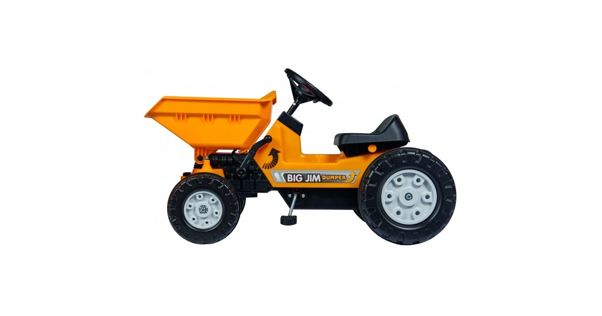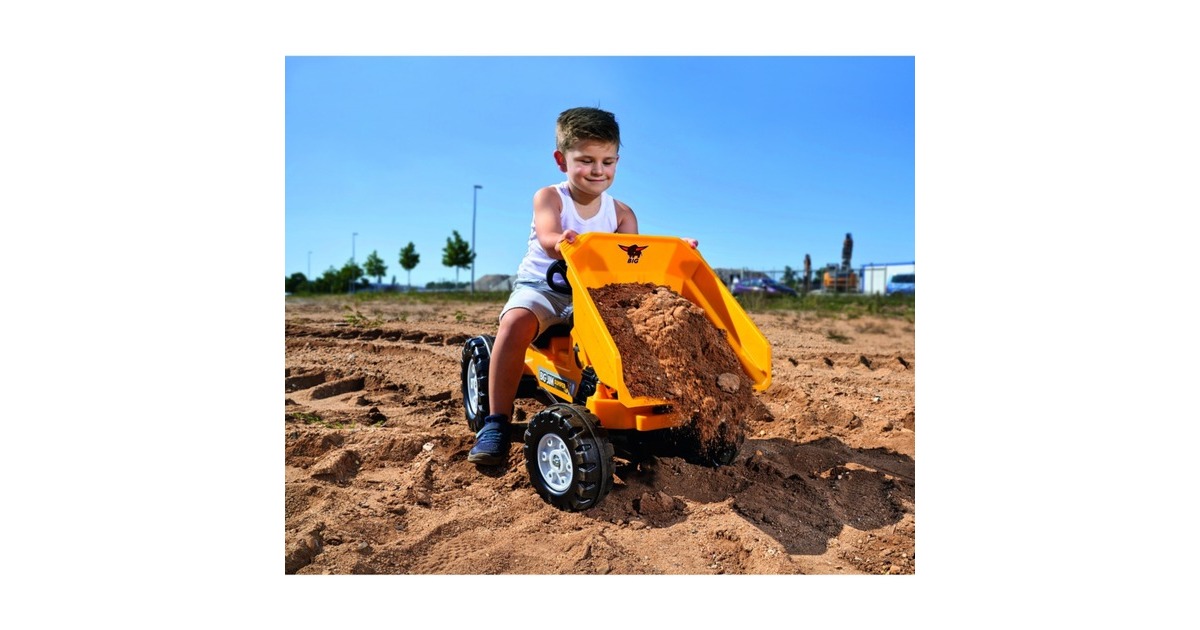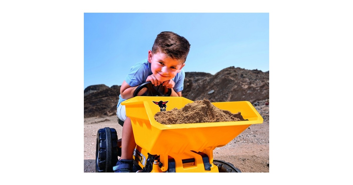 Der BIG Jim-Dumper ist mit so vielen realitätsnahen Funktionen ausgestattet, dass er keine Wünsche offen lässt und sich die Kinder wie professionelle Kipper-Fahrer fühlen können. Der hochwertige, detailgetreue Kinder-Kipper ist ab drei Jahren geeignet und verfügt über einen wartungsfreundlichen, schmutz- und staubgeschützten Präzisionskettenantrieb, der ein leichtes und kraftsparendes Fahren ermöglicht. Besonders bei jüngeren Kindern ist damit das Anfahren, auch bei schwierigerem Gelände, problemlos möglich. Sollte die Kette einmal an Spannung verlieren, lässt sich diese mit wenigen Handgriffen dank des integrierten Exzenters nachziehen. Die hochwertige Premium-Zahnritzellenkung ermöglicht ein einfaches Lenken des BIG Jim-Dumper. Je eine Anhängerkupplung vorne und hinten, die mit allen BIG-Traktoranhängern kompatibel ist, ergänzt die hochwertige Ausstattung. Besonderes Highlight für die Kinder ist die leicht zu bedienende Kippmulde mit einem Ladevolumen von ganzen sechs Litern. Fixiert wird die Kippmulde mithilfe einer einfachen, kindgerechten Hebelfunktion und ausgekippt wird sie per Hand von den Kindern. Das 3-Speichenlenkrad mit mechanischer Hupe komplettieren das spielstarke, fröhlich gelbe Fahrzeug.Art.-Nr.: 1691124