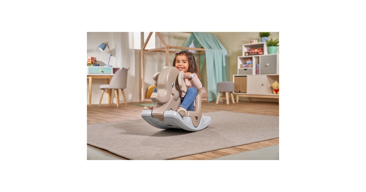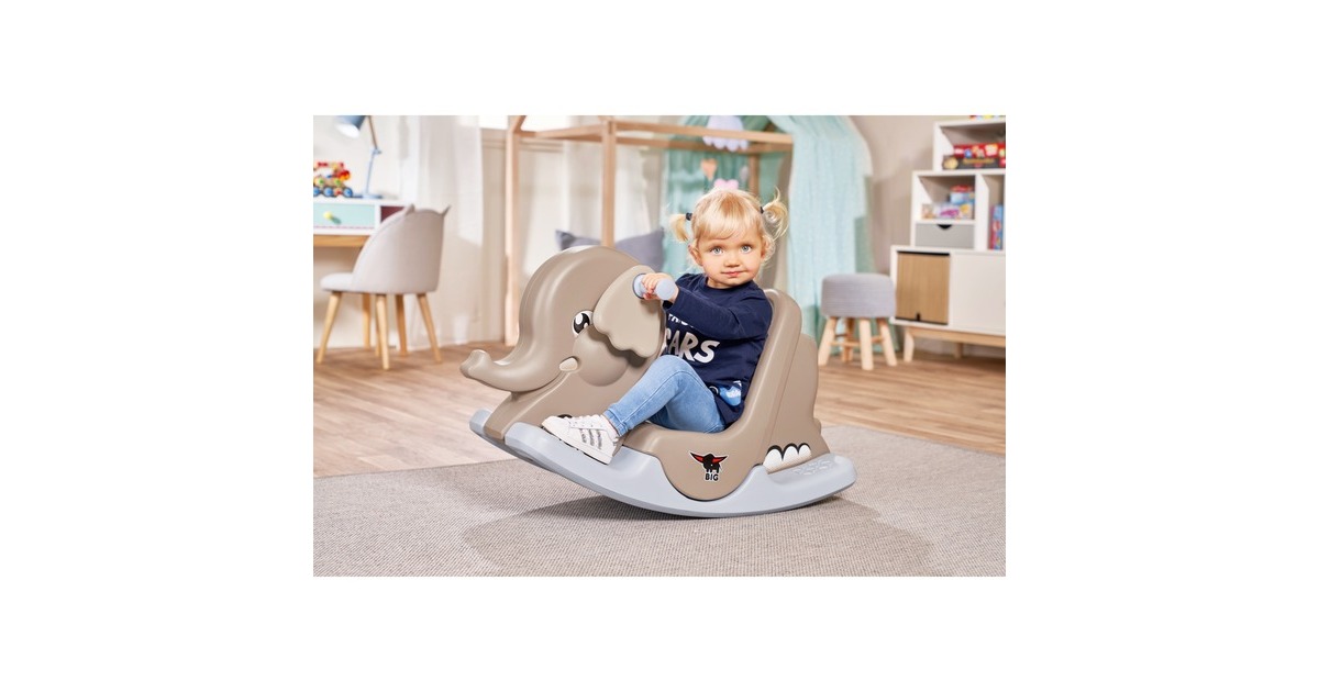 Schaukel-Elefant mit rutschfester und breiter Fußauflage, ergonomischen Griffen, beweglichen Ohren |