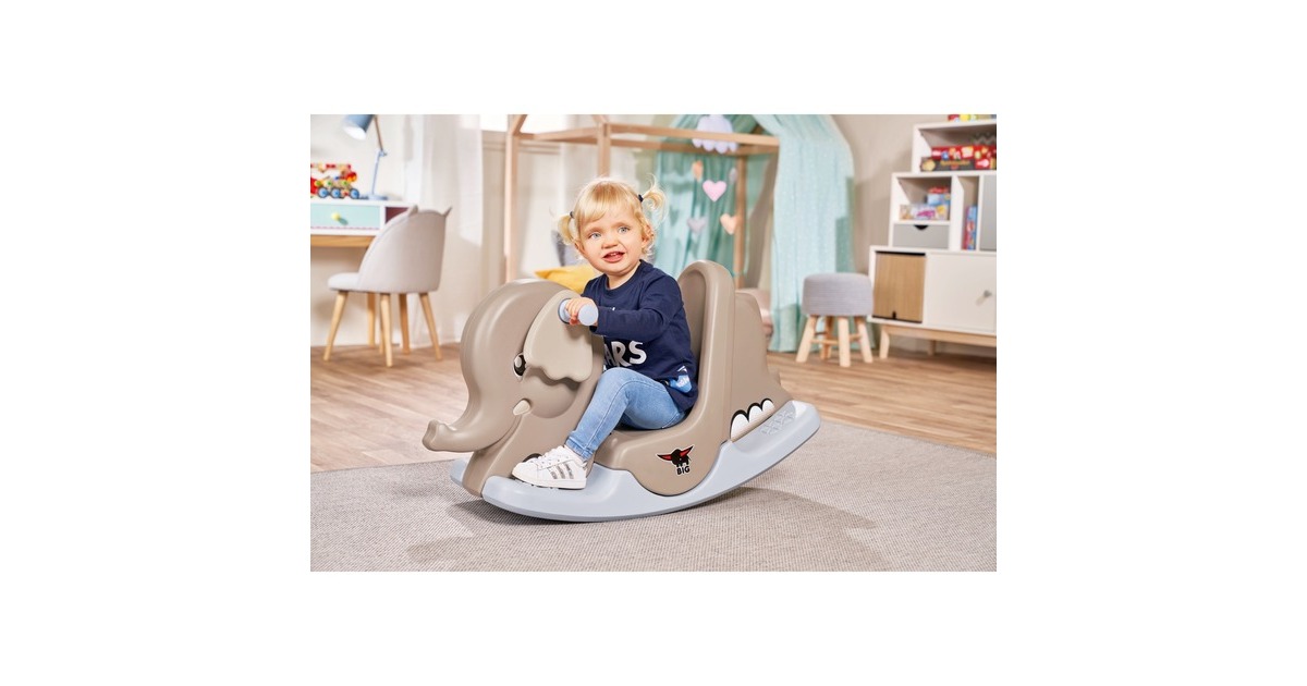 Mit dem freundlichen BIG-Rocking-Elephant macht Schaukeln großen Spaß, denn die Ohren des lustigen Elefanten machen jede Schaukelbewegung mit. Der Sitz ist anatomisch geformt und durch die hohe Rückenlehne und breite Beinauflagen sitzen die Kinder bequem und sicher. Zudem verhindert der tiefliegende Schwerpunkt des Schaukeltieres ein Umkippen. Zusätzlichen Halt geben die zwei seitlichen Griffe mit Handschutz. Die Kombination aus Grau und hübschem, frischen Hellblau wirkt in jedem Kinder- oder Wohnzimmer dekorativ. Durch das hochwertige und UV-stabile Kunststoffmaterial ist der BIG-Rocking-Elephant perfekt für innen und außen geeignet. Der wetterfeste Kunststoff lässt sich leicht und hygienisch reinigen.