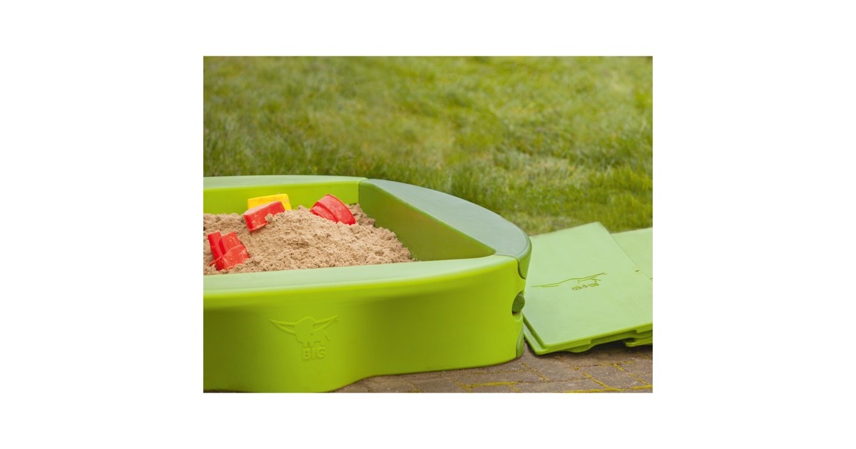 Der BIG-Sandy zählt zu den erfolgreichsten Artikeln der BIG-Outdoor-Serie. Mit wenigen Handgriffen und dem mitgelieferten Werkzeug lässt er sich in Sekundenschnelle aufbauen oder wieder in vier leicht verstaubare Teile zerlegen. Durch die moderne Farbgebung in hellem und dunklem Grün passt dieser Sandkasten perfekt in jeden Garten und ist für Kinder ab 1 Jahr geeignet. Die große Sandspielfläche sowie breite, bequeme Sitzflächen und abgerundete Ecken an allen Bauteilen sorgen für hohen Spielspaß und höchste Sicherheit. Das wetterfeste, witterungsbeständige und UV-stabilisierte Kunststoffmaterial sichert eine lange Haltbarkeit und ermöglicht eine leichte und hygienische Reinigung. Vor Verunreinigungen durch Tiere und Schmutz schützt das 3-teilige BIG-Hard-Cover, das sich leicht auf dem BIG-Sandy anbringen lässt. Zusätzliches Spielvergnügen bieten die auf der Unterseite integrierten Fahrbahnen, die sich mit Wasser befüllen lassen und so mit Booten bespielbar sind.Art.-Nr.: 1393629