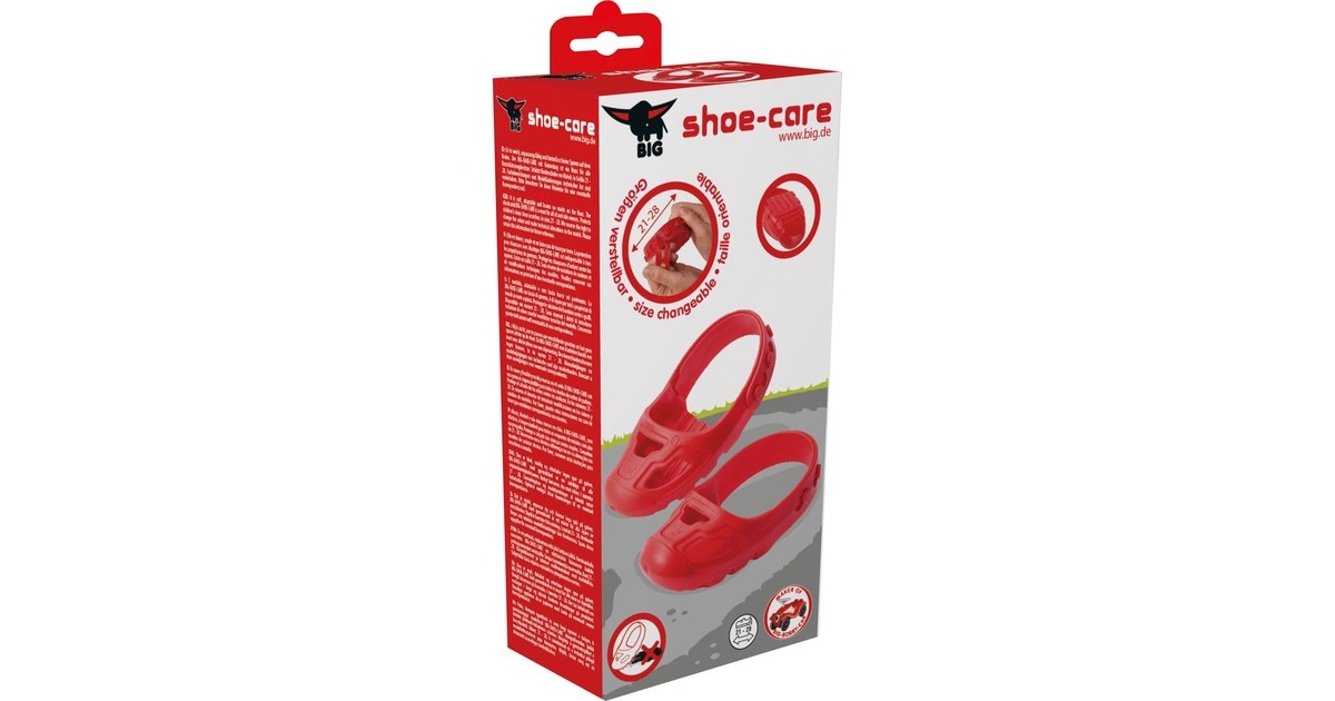 Bei der Fahrt auf Kinderfahrzeugen können durch harte Untergründe, scharfes Bremsen oder vieles mehr Kinderschuhe in Mitleidenschaft gezogen werden. Nun heißt es volle Fahrt voraus. Denn dank der BIG-Shoe-Care können Eltern aufatmen und kleine Nachwuchsrennfahrer ihre komplette Aufmerksamkeit nur noch auf das Ausprobieren der verschiedenen Fahroptionen konzentrieren. Denn die BIG Schuhschoner schützen die Schuhspitzen zuverlässig vor Abrieb. Die Schuhschoner aus weichem Kunststoffmaterial lassen sich durch die integrierten Rastnasen leicht auf die Größe der Schuhe einstellen und können so an allen gängigen Kinderschuhen in den Größen 21 – 27 befestigt werden. Für einen guten Halt beim Fahren und Laufen sorgt das Anti-Rutsch-Profil auf der Unterseite der Schuhschoner. Dabei hinterlässt der hochwertige Kunststoff keine Spuren auf Böden.Art.-Nr.: 1237098