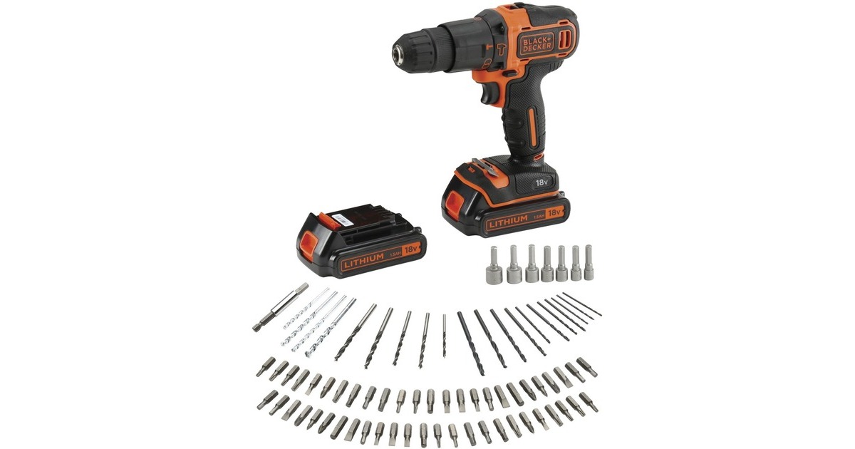 Mit dem leistungsstarken 18Volt Akku-Schlagbohrschrauber BDCHD18BAFC von Black+Decker mit max. 40 Nm Drehmoment und einer Drehzahl von bis zu 1.400 U/min werden Schraubarbeiten schnell und mühelos erledigt. Er eignet sich für alle Schraubanwendungen, Bohren in Holz bis 25mm und Bohren in Metall bis 10mm Durchmesser. Mit der Schlagbohrfunktion sind auch Bohrarbeiten in Mauerwerk bis 10mm möglich. Das Zweigang-Getriebe bietet bei niedriger Drehzahl hohe Kraft für kontrollierte Schraubarbeiten und im 2. Gang hohe Drehzahl für einfaches und schnelles Bohren. Die 11 Drehmoment-Stufen sorgen im Schraubmodus dafür, dass die Schrauben in unterschiedlichen Materialien plan eingedreht werden können, für präzise Schraubergebnisse von Anfang an. Dunklere Arbeitsbereiche sind kein Problem, denn die leuchtstarke LED bringt Licht auch in die dunkelsten Ecken. Die Drehzahl lässt sich leicht an die gewünschte Anwendung anpassen, und das Schiebe-Akku-System überzeugt mit leichtem und schnellem Akkuwechsel. Zwei Lithium-Ionen-Akkus zum Betrieb des BDCHD18BAFC sind bereits im Lieferumfang enthalten, ebenso ein Schnellladegerät, ein hochwertiger Transportkoffer sowie ein 80-teiliges Zubehör-Set.Art.-Nr.: 1380473| Akku-System | Li-Ionen-Akku, 18 Volt, 1,5 Ah, Ladezeit 90 Minuten |