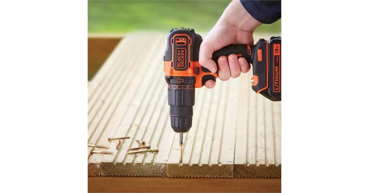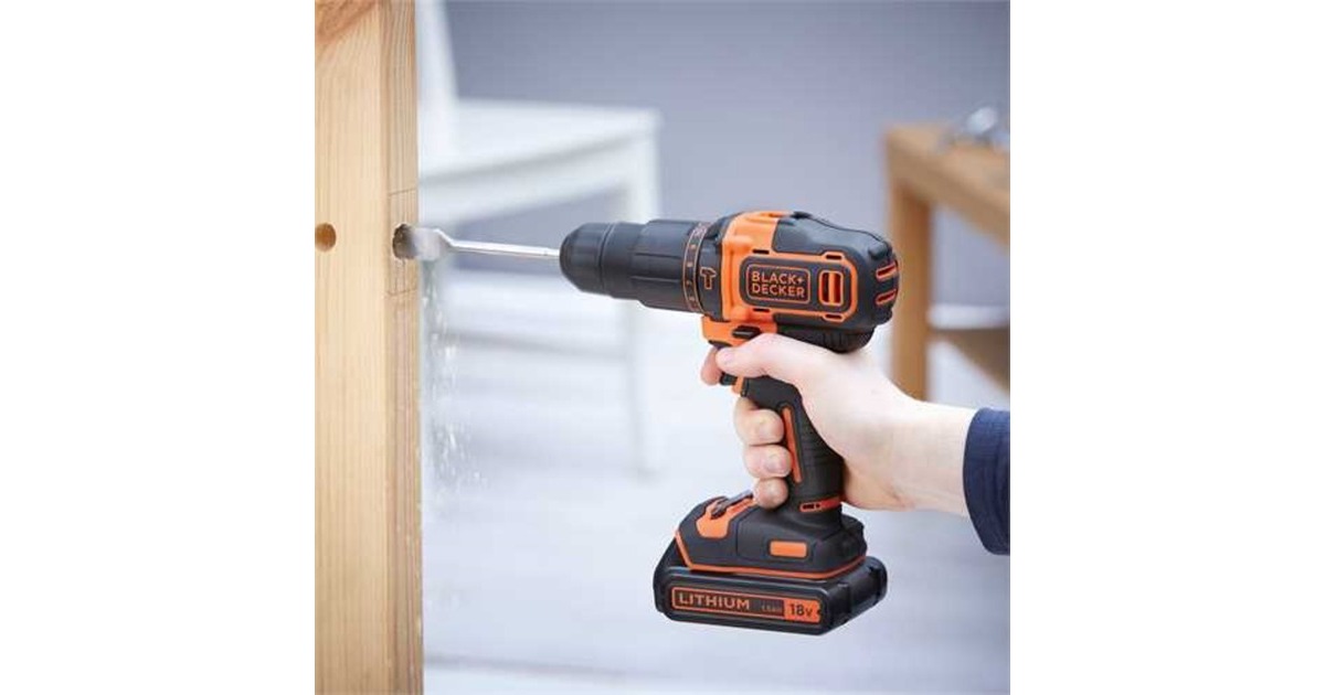 Mit dem leistungsstarken 18Volt 2-Gang-Akku-Schlagbohrschrauber BDCHD18KB von Black+Decker mit max. 40 Nm Drehmoment und einer Drehzahl von bis zu 1.400 U/min werden Schraubarbeiten schnell und mühelos erledigt. Er eignet sich für alle Schraubanwendungen, Bohren in Holz bis 25mm und Bohren in Metall bis 10mm Durchmesser. Mit der Schlagbohrfunktion sind auch leichte Bohrarbeiten in Mauerwerk bis 10mm möglich. Das Zweigang-Getriebe bietet bei niedriger Drehzahl hohe Kraft für kontrollierte Schraubarbeiten und im 2. Gang hohe Drehzahl für einfaches und schnelles Bohren. Die 11 Drehmoment-Stufen sorgen dafür, dass die Schrauben in unterschiedlichen Materialien plan eingedreht werden können, für präzise Schraubergebnisse von Anfang an. Die Drehzahl lässt sich über die ultimative Fingertip-Kontrolle leicht an die gewünschte Anwendung anpassen, und das Schiebe-Akku-System überzeugt mit leichtem und schnellem Akkuwechsel. Das LED-Arbeitslicht sorgt dabei für gute Sichtverhältnisse in dunklen Arbeitsbereichen. Der Lithium-Ionen-Akku des Schlagbohrschraubers BDCHD18KB hält über 80% der Ladung länger als 90 Tage, ohne nachladen zu müssen.Art.-Nr.: 1331309