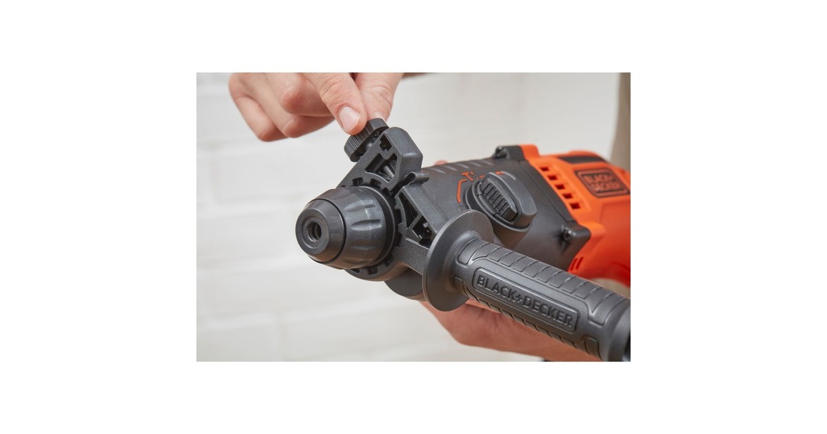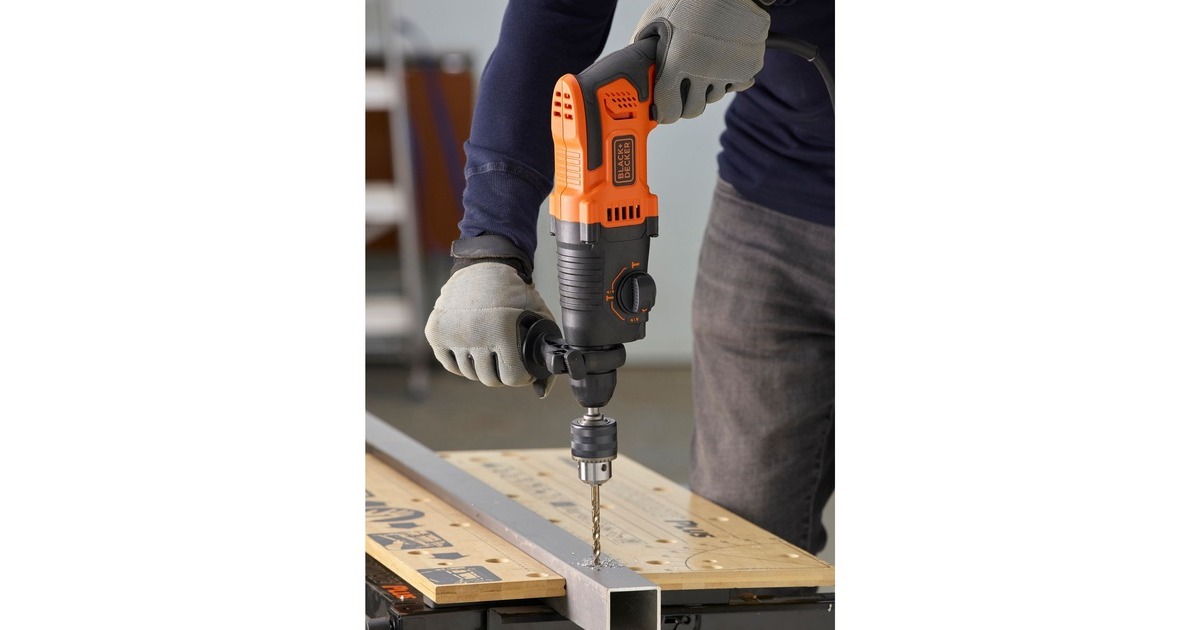 Der Bohrhammer BEHS01K von BLACK+DECKER ermöglicht durch 1,4 Joule Schlagenergie einen effektiven Bohrfortschritt in harten Materialien wie Beton, Stein oder Granit. Im Bohrmodus ist der Bohrhammer in der Lage bis zu 16mm Löcher in Beton zu bohren. Das kompakte ergonomische Design, die gute Gerätebalance und der Feststellschalter erlauben ermüdungsarmes Arbeiten bei horizontalem und vertikalem Einsatz. Der Bohrhammer BEHS01K bietet 3 Funktionsmodi: Schlagbohrfunktion für Bohrarbeiten, wie z.B. das Bohren in Wänden, eine Meißelfunktion für leichte bis mittlere Meißelarbeiten, wie das Entfernen von Putz und Fliesen, sowie eine Bohrfunktion zum Bohren ohne Schlag in Holz und Metall. Der Bohrhammer BEHS01K wird mit Zubehör im praktischen Transportkoffer geliefert.Art.-Nr.: 1798329