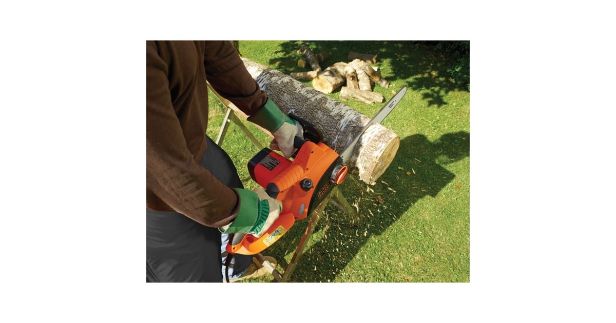 Die Black & Decker Kettensäge CS2040 eignet sich dank leistungsstarkem 2.000 Watt Motor und 12,5 m/s Kettengeschwindigkeit ideal für Äste und Stämme bis zu einem Durchmesser von 40 cm. Die Rückschlagarme Kette ermöglicht saubere und schneller Schnitte in feuchtem und trockenem Holz. Durch das automatische Kettenschmierungssystem wird stets eine kontinuierliche Ölversorgung der Kette gewährleistet. Wenn die Kette mal zurückschlägt sorgt die Kettenbremse mit automatischer Unterbrechung der Stromversorgung nach 0,15 Sekunden für Sicherheit des Nutzers. Nachspannen und Wechseln der Kette erfolgt bei der Kettensäge CS2040 komplett werkzeuglos.Art.-Nr.: 1280467
