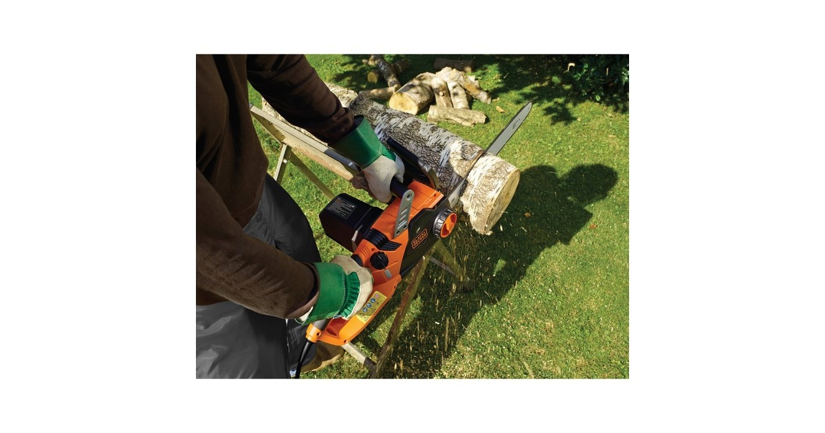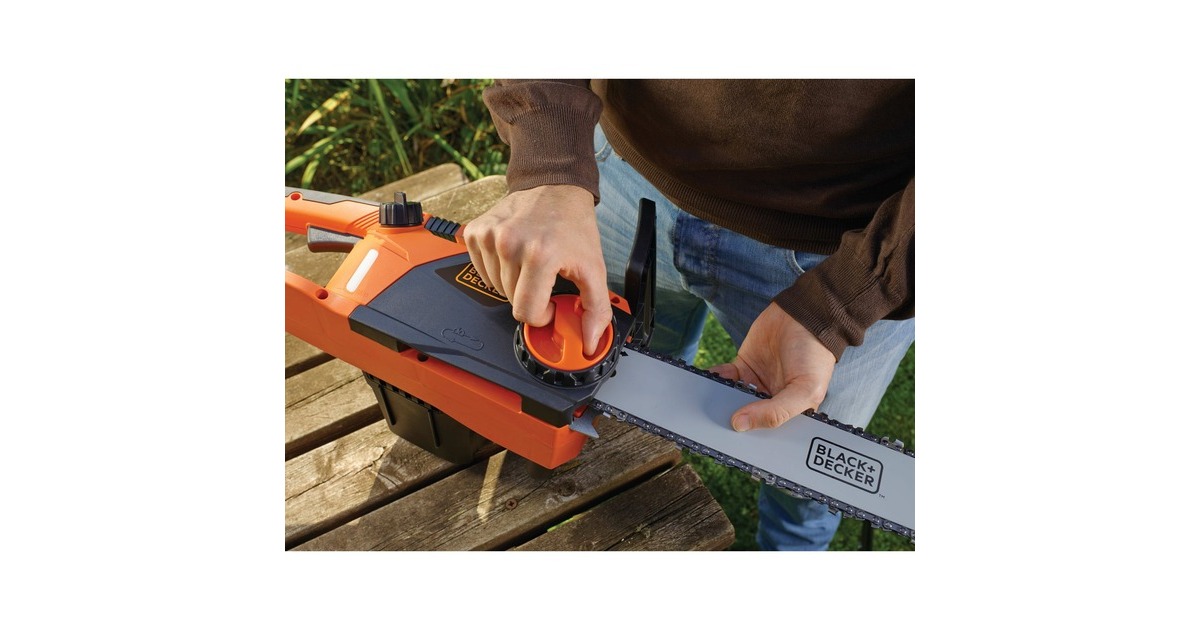 Die Kettensäge CS2245 von Black & Decker eignet sich mit ihrer rückschlagarmen Kette ideal für saubere Schnitte in feuchtem und trockenem Holz. Dank des starken 2.200 Watt Motors mit 12,5 m/s Kettengeschwindigkeit schafft die Kettensäge CS2245 bis zu 45 cm starke Stämme. Die automatische Kettenschmierung sorgt für eine permanente Ölversorgung der Kette. Für zusätzliche Sicherheit sorgt die Kettenbremse, welche bei Rückschlägen innerhalb von 0,15 Sekunden die Stromversorgung unterbricht und die Kette stoppt. Muss die Kette mal gewechselt werden, wird dies schnell und einfach ohne Werkzeug vollzogen.Art.-Nr.: 1280466