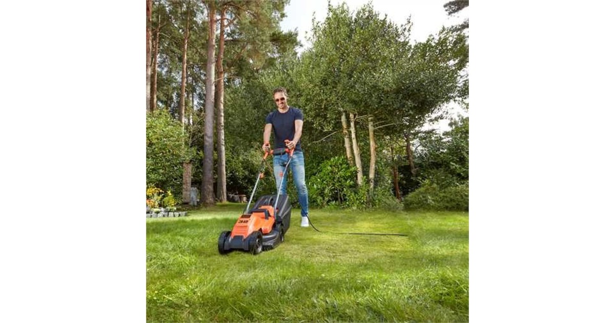 Der Elektromäher BEMW451BH-QS von BLACK+DECKER eignet sich mit 32cm Schnittbreite für kleinere Rasenflächen. Das ergonomische Fahrradlenker-Griffdesign ermöglicht eine gleichmäßige Druckverteilung und einfache Steuerung des Rasenmähers. Der Komfortschalter im Griffbereich ermöglicht eine einfache und kontrollierte Inbetriebnahme. Er erzielt eine optimierte Schnittqualität und Grasaufnahme durch das geflügelte Messerdesign. Der Grasfangkorb mit Füllstandsanzeige bietet eine große Kapazität und zeigt an, wenn der Behälter geleert werden muss. Die 3-fache Schnitthöhenverstellung (23 / 43 / 63 mm) lässt sich achsweise einstellen. Der umklappbare Griff und die Tragegriffe erleichtern die einfache Aufbewahrung und den leichten Transport.Art.-Nr.: 1440591