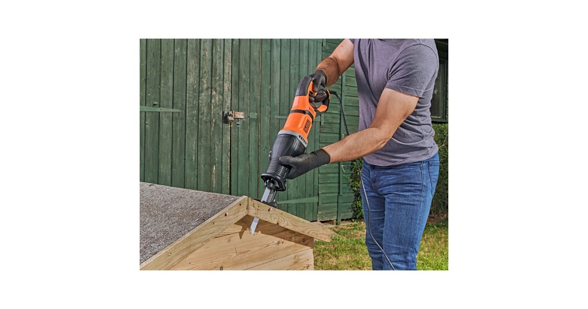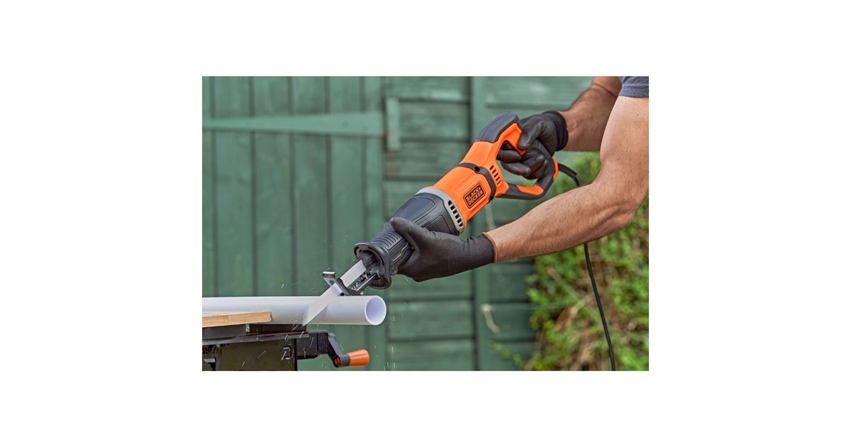 Die BLACK+DECKER Säbelsäge BES301 ist ein sehr handliches Gerät für verschiedene Schnitte in Holz, Metall und Kunststoff sowie für Abbrucharbeiten. Der ausziehbare, bewegliche Sägeschuh erlaubt eine flexible Anpassung an die jeweilige Arbeit. Der zweite Sägeschuh mit Astklemme schafft die Möglichkeit, Äste während des Schneidens zu sichern und den Schnitt besser zu kontrollieren. Die werkzeuglose Sägeblatteinspannung bietet einen einfachen und schnellen Sägeblattwechsel. Die Säbelsäge BES301 wird mit einem Holz-Sägeblatt und einem Metall-Sägeblatt geliefert.Art.-Nr.: 1798340