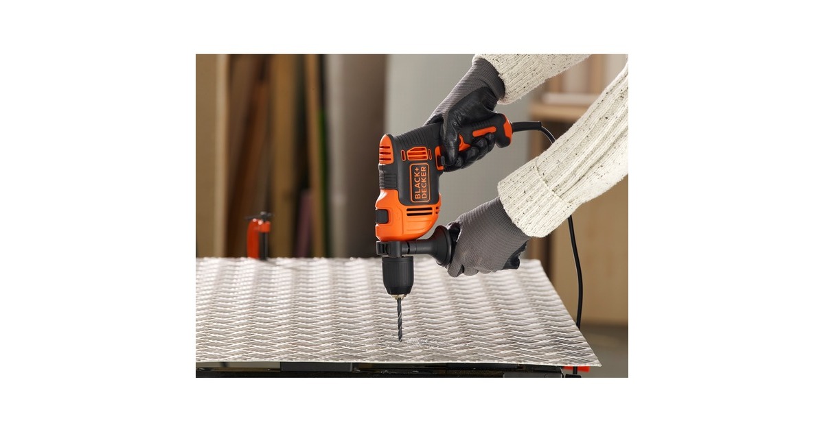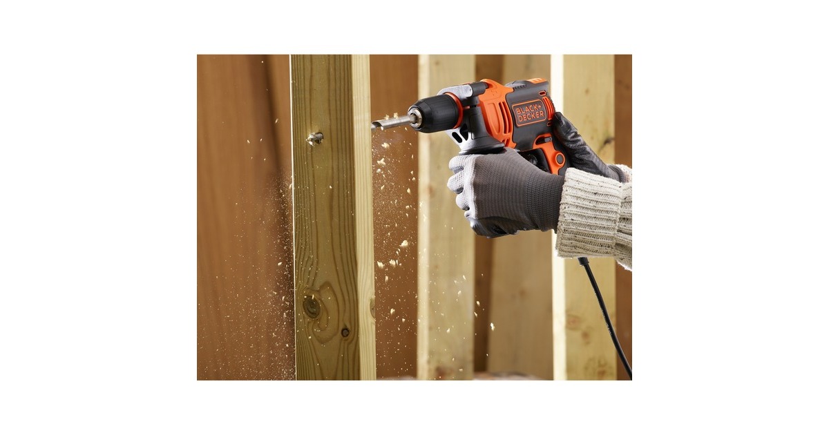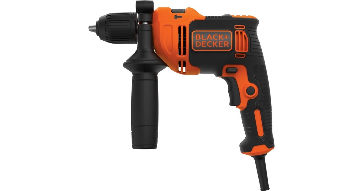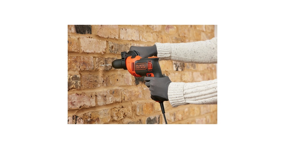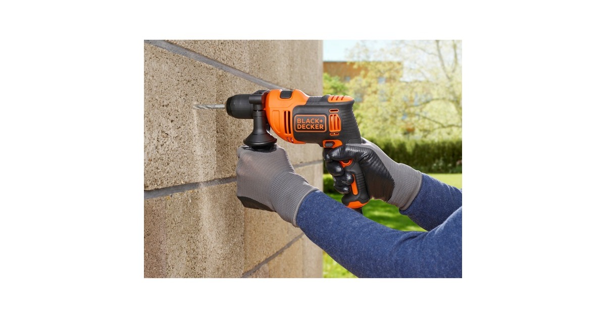 Die BLACK+DECKER Schlagbohrmaschine BEH710 eignet sich mit ihrem verbesserten Schlagwerk für Arbeiten in Stein und Mauerwerk, aber auch für eine Vielzahl anderer Materialien wie z.B. Holz, Metall und Kunststoff. Die stufenlos variable Drehzahl von 0 - 2.800 U/min gewährleistet kontrolliertes und sauberes Anbohren. Das einteilige 13mm Metall-Schnellspannbohrfutter mit manueller Spindelarretierung sorgt für schnellen und einfachen Werkzeugwechsel und für festeren Sitz von Bohrern und Schrauberbits. Der mitgelieferte Zusatzhandgriff, der großflächiger Schalter und der Arretierknopf für Dauerbetrieb machen die Bedienung sicher und einfach. Die Schlagbohrmaschine BEH710 hat außerdem ein umschaltbares Kohlebürsten-System für volle Leistung im Rechts- und Linkslauf bei gleichzeitig verringerter Abnutzung. Dabei ist sie kompakt und leicht, für ermüdungsarmes Arbeiten auch bei längeren Einsätzen.Art.-Nr.: 1440674