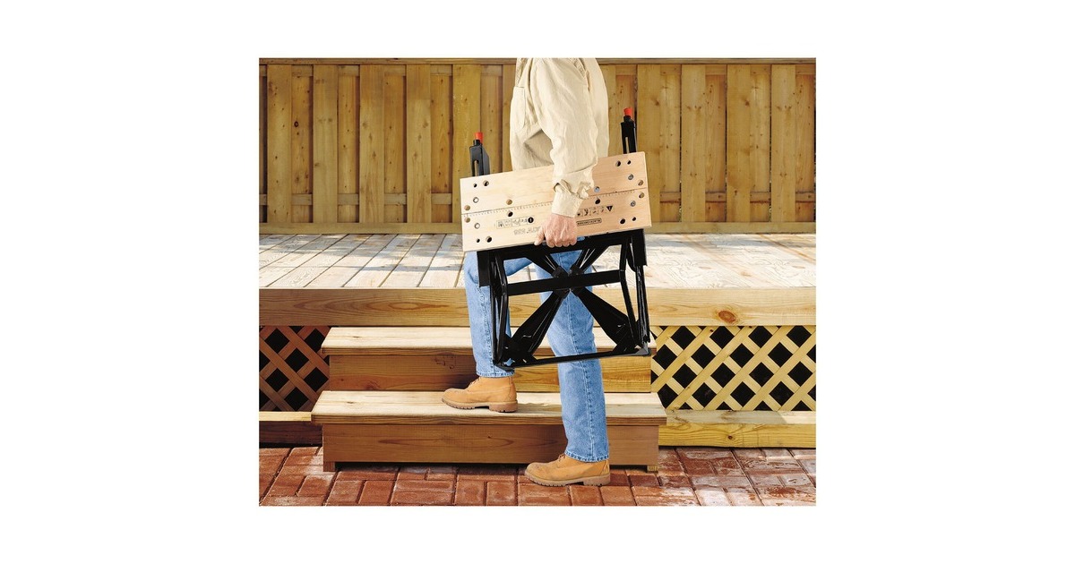 Die Werkbank Workmate WM536 von BLACK+DECKER besteht aus einer massive Stahlkonstruktion, die bis 250kg belastbar ist. Sie bietet zwei einstellbare Arbeitshöhen, 775mm und 595mm. Die verstellbaren Spannbacken und Klemmelemente bieten vielseitige und sichere Einspannmöglichkeiten. Art.-Nr.: 1441323