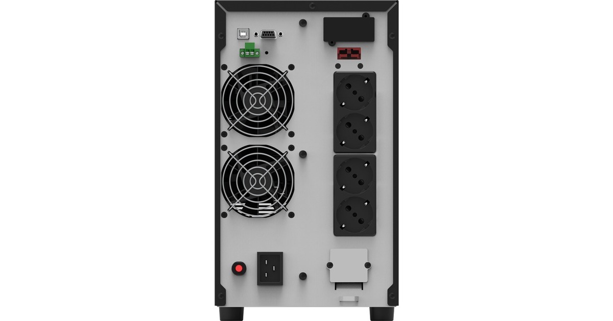 Batterien: 6x 12V/9Ah, Ladezeit: 4h auf 90%, USB mit Human Interface Device (HID) Unterstützung, Intelligent Slot, reine Sinuswelle, Eingang: C14 |
