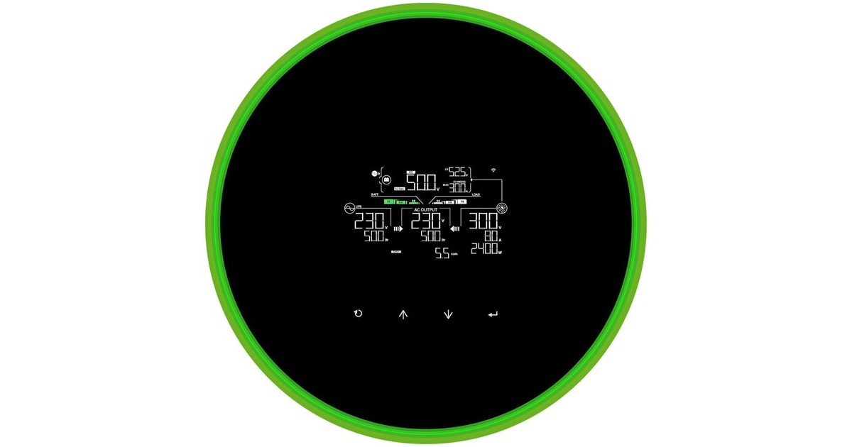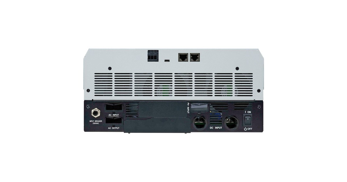 Der PowerWalker Solar-Wechselrichter 5600 LGT OFG ist ein multifunktionaler Off-Grid Wechselrichter. Er kann mit einem Generator oder mit einer PV (Photovoltaik) Anlage als Stromquelle verwendet werden und ermöglicht ein schnelles Aufladen der vier externen Batterien (nicht enthalten). Er koordiniert die eingehende Leistung des Stromnetzes, die Energieerzeugung der Solaranlage und die gespeicherte Energie im Batteriesystem. Der moderne Solar-Wechselrichter mit fortschrittlichem Touch-LCD kann dann alle Arten von Geräten zu Hause oder im Büro mit Strom versorgen, einschließlich motorbetriebener Geräte wie Röhrenlampen, Ventilatoren, Kühlschränke und Klimaanlagen. Er generiert einen reinen Sinuswellenausgang für eine breite Palette von Anwendungen. Das übersichtliche Touch-LCD-Display ermöglicht eine benutzerkonfigurierbare und leicht zugängliche Bedienung, wie z.B. den Batterieladestrom und die Priorität des AC-/PV-Ladegeräts. Der Solar-Wechselrichter 5600 LGT OFG kann mit der Smartphone-App WatchPower von PowerWalker verwaltet werden. Art.-Nr.: 1858350