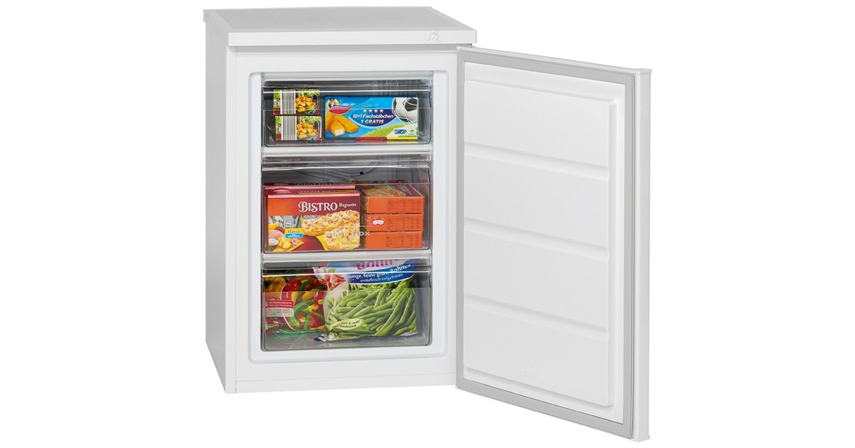 Der Gefrierschrank Bomann GS 2186.1 stellt einen Gesamtnutzinhalt von 85 Litern zur Verfügung und ist mit drei Gefrierschubladen ausgestattet. Innerhalb von 24 Stunden friert er bis zu 4 Kilogramm Lebensmittel ein. Dank seiner kompakten Maße, der justierbare Standfüße sowie des wechselbaren Türanschlags lässt sich der GS 2186.1 auch auf kleinem Raum flexibel Platzieren. Die Temperaturregelung erfolgt stufenlos bis -18 °C. Mit einem Stromverbrauch von 164 kWh im Jahr ist der GS 2186.1 in die Energieeffizienzklasse E eingestuft. Art.-Nr.: 1700448