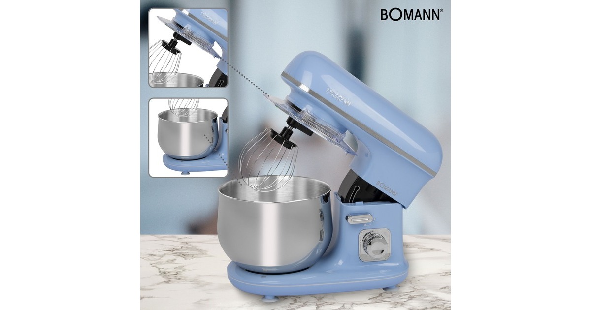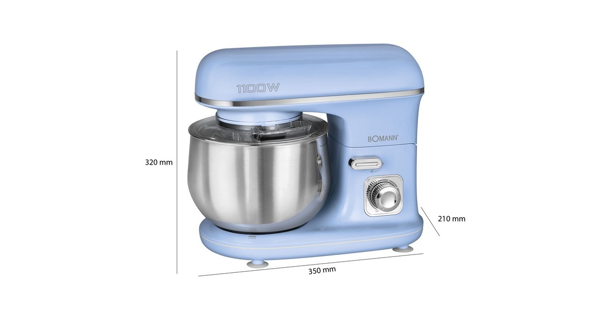 Schüssel aus Edelstahl, Rühr- und Knethaken aus Alu-Druckguss |