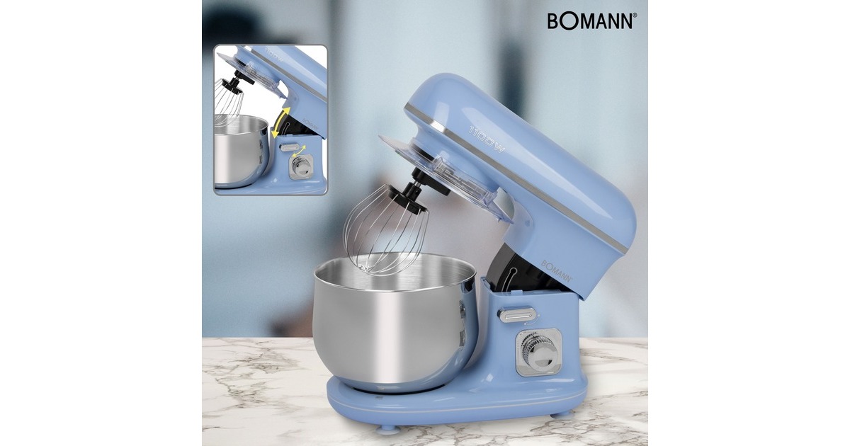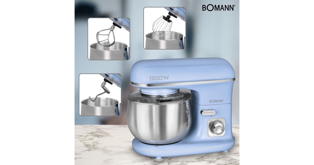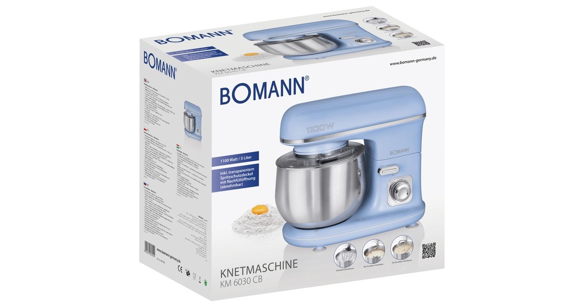 Die kraftvolle Knetmaschine KM 6030 mit leistungsstarken 1.100 Watt ist ideal für die Zubereitung von Rühr- und Knetteigen, auch lockerer Biskuit und luftiger Eischnee ist mit dem Edelstahl-Schneebesen ein Kinderspiel. In der großen 5-Liter-Edelstahlschüssel lassen sich, dank des robusten Spezialgetriebes, Teige bis zu 2,5 kg - 3 kg verarbeiten. Mit dem Alu-Druckguss-Rührhaken lassen sich größere Mengen Teig gleichmäßig verrühren. Für schwere Teige wie Hefe- oder Brotteig ist der Alu-Druckguss-Knethaken optimal geeignet. Die Geschwindigkeit kann stufenlos eingestellt werden. Ein abnehmbarer Spritzschutzdeckel mit Nachfüllöffnung, der um 35° schwenkbare Multifunktionsarm mit Entriegelungsmechanismus und das Schnellspannfutter zum Wechseln der einzelnen Werkzeuge sorgen bei der KM 6030 für weiteren Komfort. Für Sicherheit sorgen die Sicherheitsschaltung sowie die Saugfüße. Art.-Nr.: 1588212