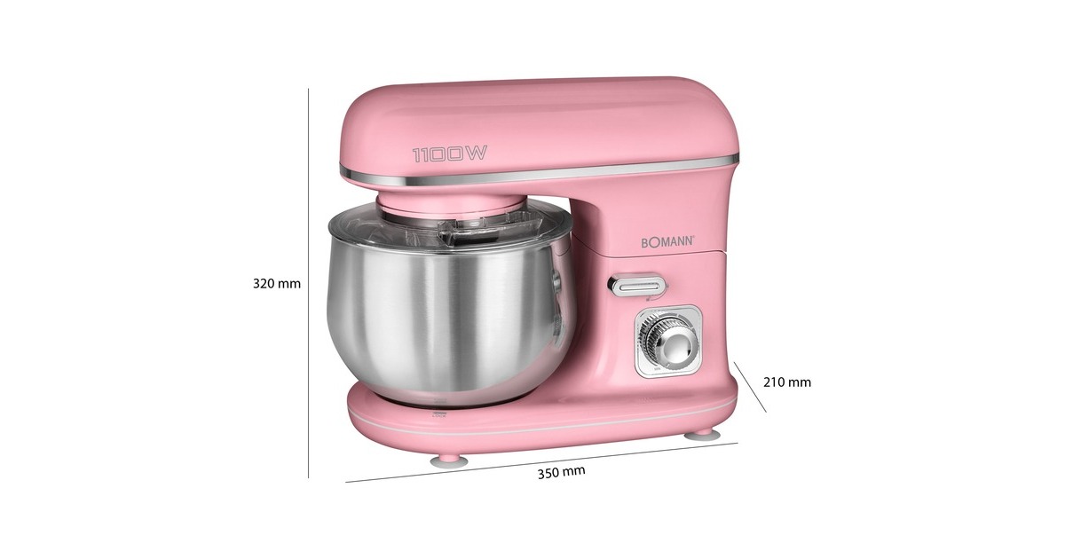 Schüssel aus Edelstahl, Rühr- und Knethaken aus Alu-Druckguss |