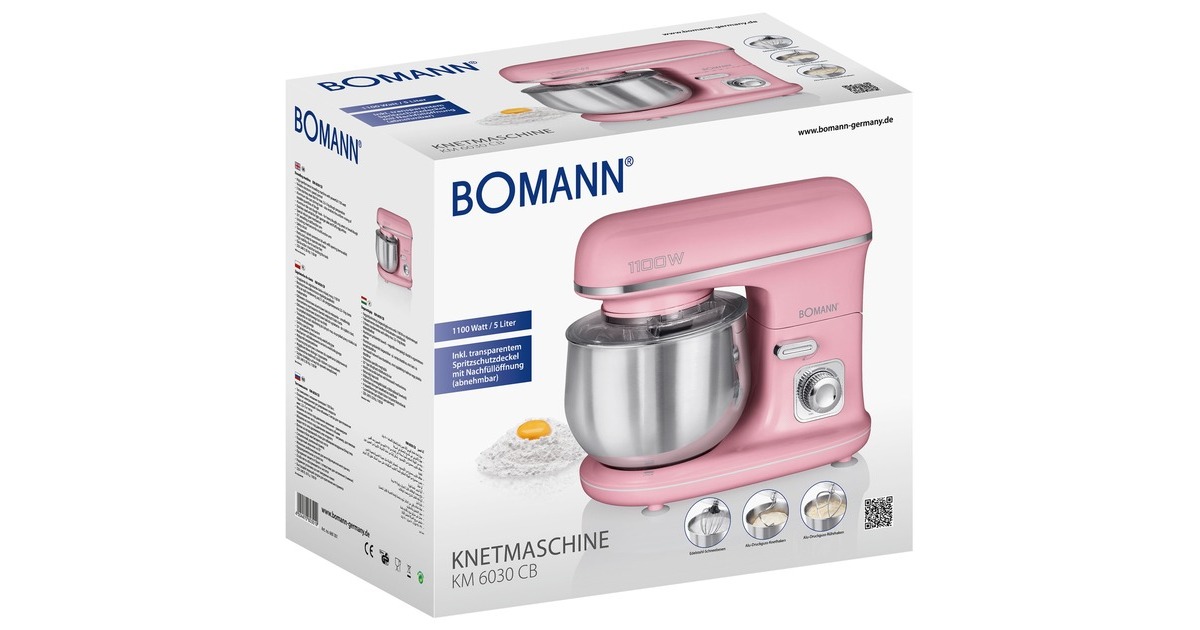 Die kraftvolle Knetmaschine KM 6030 mit leistungsstarken 1.100 Watt ist ideal für die Zubereitung von Rühr- und Knetteigen, auch lockerer Biskuit und luftiger Eischnee ist mit dem Edelstahl-Schneebesen ein Kinderspiel. In der großen 5-Liter-Edelstahlschüssel lassen sich, dank des robusten Spezialgetriebes, Teige bis zu 2,5 kg - 3 kg verarbeiten. Mit dem Alu-Druckguss-Rührhaken lassen sich größere Mengen Teig gleichmäßig verrühren. Für schwere Teige wie Hefe- oder Brotteig ist der Alu-Druckguss-Knethaken optimal geeignet. Die Geschwindigkeit kann stufenlos eingestellt werden. Ein abnehmbarer Spritzschutzdeckel mit Nachfüllöffnung, der um 35° schwenkbare Multifunktionsarm mit Entriegelungsmechanismus und das Schnellspannfutter zum Wechseln der einzelnen Werkzeuge sorgen bei der KM 6030 für weiteren Komfort. Für Sicherheit sorgen die Sicherheitsschaltung sowie die Saugfüße. Art.-Nr.: 1588214