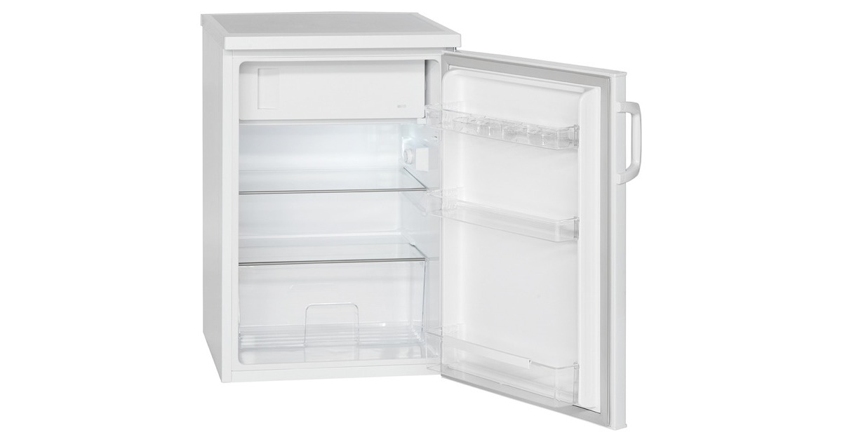 Der Kühlschrank Bomann KS 2194.1 ist mit einem Gesamtnutzinhalt von 120 Litern ideal für den Single-Haushalt geeignet. Ausgestattet ist er mit einer höhenverstellbaren Glasabstellfläche, einer transparenten Obst-/Gemüseschublade mit Glasabdeckung sowie drei Türfächern. Die LED-Innenraumbeleuchtung sorgt stets für gute Sicht auf die Speisen und die Abtauautomatik erleichtert die Reinigung und Pflege des Kühlraums. Das 4-Sterne-Gefrierfach mit Klappe bietet einen Nutzinhalt von 13 Litern und friert innerhalb von 24 Stunden bis zu 2 Kilogramm Lebensmittel ein. Dank der justierbaren Standfüße sowie dem wechselbaren Türanschlag lässt sich das Gerät zudem flexibel platzieren. Mit einem Stromverbrauch von 110 kWh im Jahr ist der KS 2194.1 in die Energieeffizienzklasse D eingestuft.Art.-Nr.: 1701284