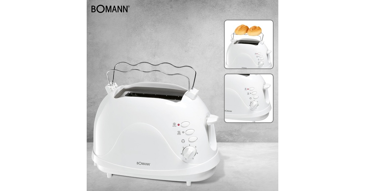 Der Bomann Toaster TA 246 CB röstet bis zu zwei Scheiben Toast gleichzeitig und kann diese dank Cool-Touch Gehäuse einfach aus dem Toaster nehmen. Auch Brötchen lassen sich dank des aufsteckbaren Aufsatzes wieder frisch aufbacken, entstandene Krümel können mittels der herausnehmbaren Krümelschublade leicht entfernt werden. Der Bräunungsgrad ist stufenlos einstellbar und kann jederzeit durch die Stoppfunktion unterbrochen werden. Möchte man gefrorene oder kalte Brotscheiben genießen ist das auch ganz leicht: Per Aufwärm- oder Auftaufunktion in kürzester Zeit.Art.-Nr.: 1655103