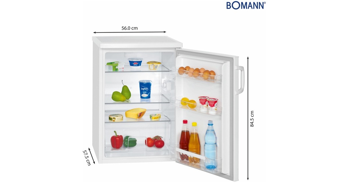 Der Vollraumkühlschrank Bomann VS 2195.1 ist mit seinen Gesamtnutzinhalt von 133 Litern perfekt für den kleinen Haushalt geeignet und mit drei Glasabstellflächen, davon zwei höhenverstellbar, einer transparenten Obst-/Gemüseschublade sowie drei Türfächer ausgestattet. Die Temperaturregelung erfolgt stufenlos von 0°C bis +8°C und die LED-Innenraumbeleuchtung sorgt stets für eine gute Sicht auf die gelagerten Speisen. Dank des wechselbaren Türanschlags sowie der justierbaren Standfüße lässt sich der kompakte VS 2185.1 flexibel platzieren. Mit einem Stromverbrauch von 72 kWh im Jahr ist der VS 2195.1 in die Energieeffizienzklasse D eingestuft.Art.-Nr.: 1702634