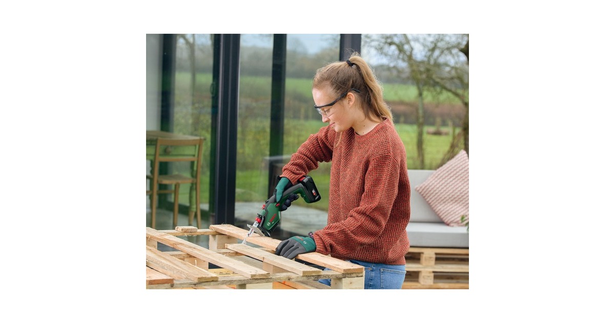 Die Bosch Akku-Gartensäge Keo sägt mühelos bis zu 8cm dicke Äste durch einfaches Ziehen am Abzug. Der abnehmbare Haltebügel "A-Grip" hält freihängende Äste beim Schneiden fest und ermöglicht so einen problemlosen Schnitt. Sie eignet sich zum einhändigen Ausasten, zum Sägen von Holz bis 80mm, weichem Metall (z.B. Kupfer) bis 7mm oder Gipskartonplatten, für kurvige und gerade Schnitte. Die austauschbaren Sägeblätter ermöglichen ein einziges Werkzeug für verschiedenste Heim- und Gartenarbeiten. Die Säge ermöglicht ca. 30 bis 115 Äste pro Akkuladung zu schneiden. Dank Lithium-Ionen-Technologie gibt es keinen Memory-Effekt und keine Selbstentladung, der Akku ist immer einsatzbereit.Art.-Nr.: 1827026