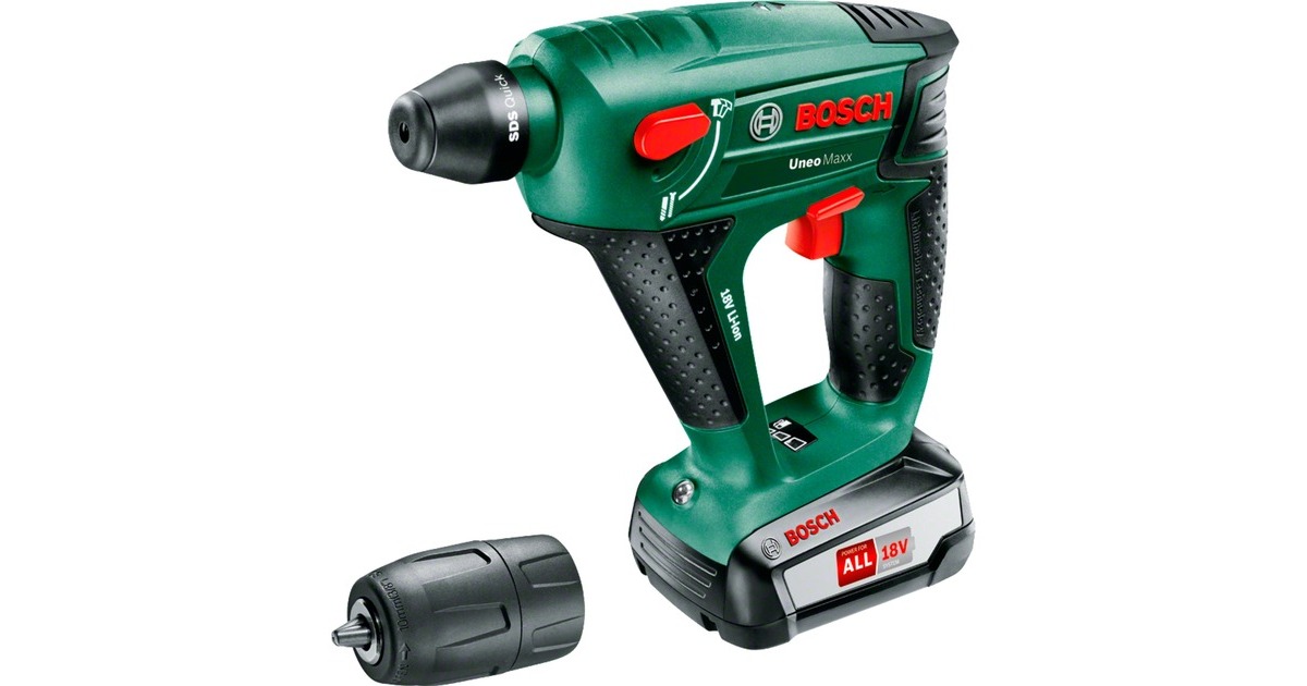 Der Akku-Bohrhammer Uneo Maxx von Bosch ist ein leistungsstarkes und kompaktes 3-in-1-Akku-Werkzeug für schwierige Arbeiten in jedem Material. Er wurde für schwierigste Hammer-, Bohr- und Schraubarbeiten in Beton, Mauerwerk, Stein, Fliesen, Metall oder Holz konstruiert. Das pneumatische Bosch Hammerwerk und der starke Motor ermöglichen schnelles Bohren bis zu 10mm in Beton. Der Bohrhammer besitzt ein SDS-Schnellspannbohrfutter für schnellen Wechsel aller 1/4"-Sechskant- und SDS Quick-Bohrer in nur drei Sekunden. Der 1,4 kg leichte Uneo Maxx ist sehr handlich, auch auf beengtem Raum und bewältigt mühelos jede Arbeit, egal ob Schlagbohren in Beton oder präzises Bohren in Holz.Art.-Nr.: 1619699