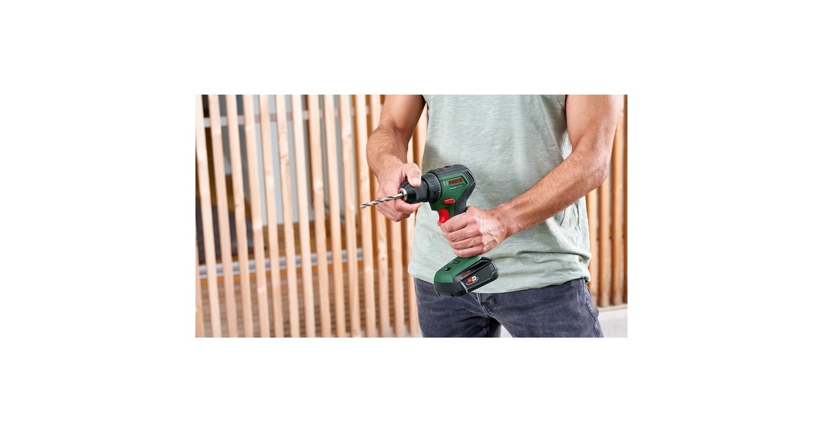 Der Akku-Bohrschrauber UniversalDrill 18V-60 von Bosch bietet Kraft und Präzision. Das hilfreiche kabellose Werkzeug verfügt über ein 2-Gang-Planetengetriebe und 20 Drehmomentstufen plus Bohrstufe für optimales Drehmoment beim Schrauben und ideale Geschwindigkeit beim Bohren. Der langsame starke erste Gang ist ideal zum Schrauben und Bohren größerer Durchmesser, während der zweite Gang einen schnellen Bohrfortschritt bei kleinen Durchmessern ermöglicht. Dank des einhülsigen 13-mm-Bohrfutters mit Auto-Lock können die Bohrer und Schrauberbits mühelos gewechselt werden. Der kompakte Bohrschrauber mit ergonomischem Design ist außerdem mit einem eingebauten LED-Arbeitslicht ausgestattet, um die Sicht an dunklen Stellen zu erleichtern. Der bürstenlose Motor vereint eine deutlich längere Lebensdauer mit mehr Leistung. Er wird elektronisch gesteuert, hat eine geringere Wärmeabgabe, funktioniert kontakt- und verschleißfrei. Der Bohrschrauber UniversalDrill 18V-60 ist der kompetente Allrounder für verschiedenste Bohr- und Schraubarbeiten in Holz, Metall und Kunststoff. Dank Lithium-Ionen-Technologie gibt es keinen Memory-Effekt und keine Selbstentladung, der Akku ist immer einsatzbereit. Der Akku-Bohrschrauber UniversalDrill 18V-60 ist Teil der POWER FOR ALL ALLIANCE. Ein einziger Akku kann eine Vielzahl von Geräten verschiedenster Marken betreiben.Art.-Nr.: 1876112