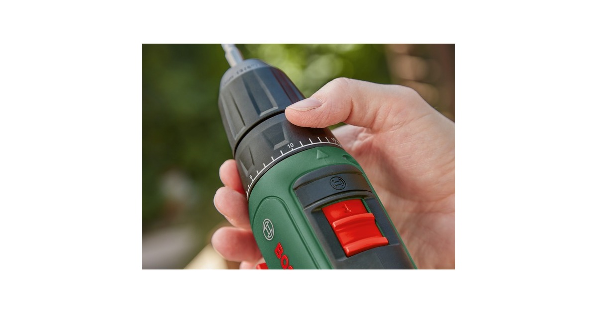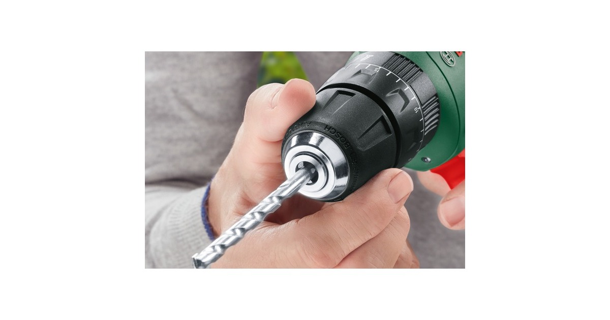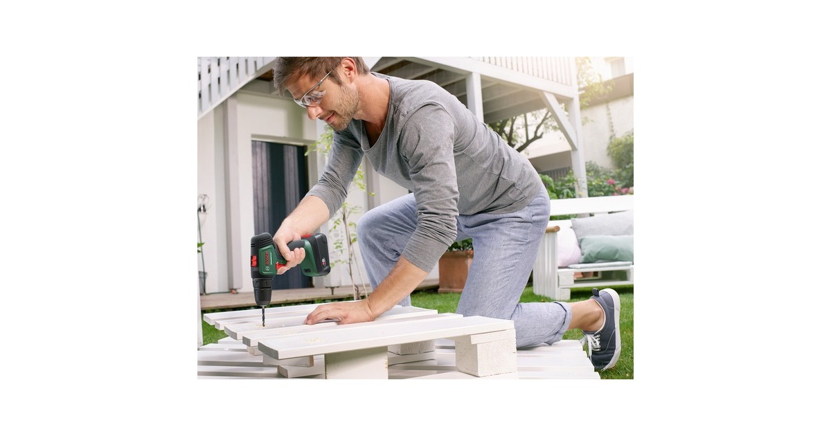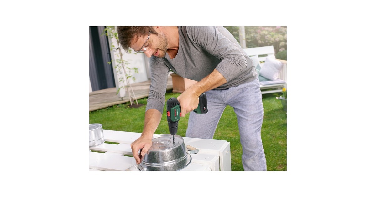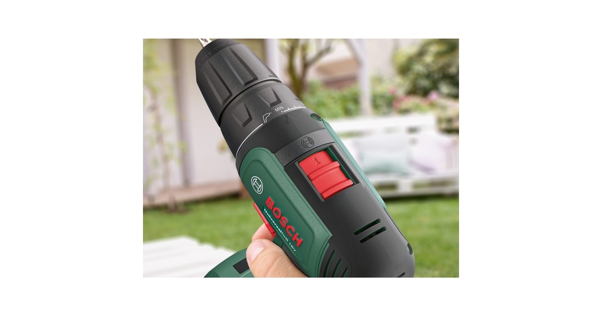 Der Akku-Bohrschrauber UniversalDrill 18V von Bosch ist sehr komfortabel und handlich. Das hilfreiche kabellose Werkzeug verfügt über ein 2-Gang-Planetengetriebe und 20 Drehmomentstufen plus Bohrstufe für optimales Drehmoment beim Schrauben und ideale Geschwindigkeit beim Bohren. Der langsame starke erste Gang ist ideal zum Schrauben und Bohren größerer Durchmesser, während der zweite Gang einen schnellen Bohrfortschritt bei kleinen Durchmessern ermöglicht. Dank des einhülsigen 10-mm-Bohrfutters mit Auto-Lock können die Bohrer und Schrauberbits mühelos gewechselt werden. Der kompakte Bohrschrauber mit ergonomischem Design ist außerdem mit einem eingebauten LED-Arbeitslicht ausgestattet, um die Sicht an dunklen Stellen zu erleichtern. Der Bohrschrauber UniversalDrill 18V ist der kompetente Allrounder für verschiedenste Bohr- und Schraubarbeiten in Holz, Metall und Kunststoff. Dank Lithium-Ionen-Technologie gibt es keinen Memory-Effekt und keine Selbstentladung, der Akku ist immer einsatzbereit.Art.-Nr.: 1826983