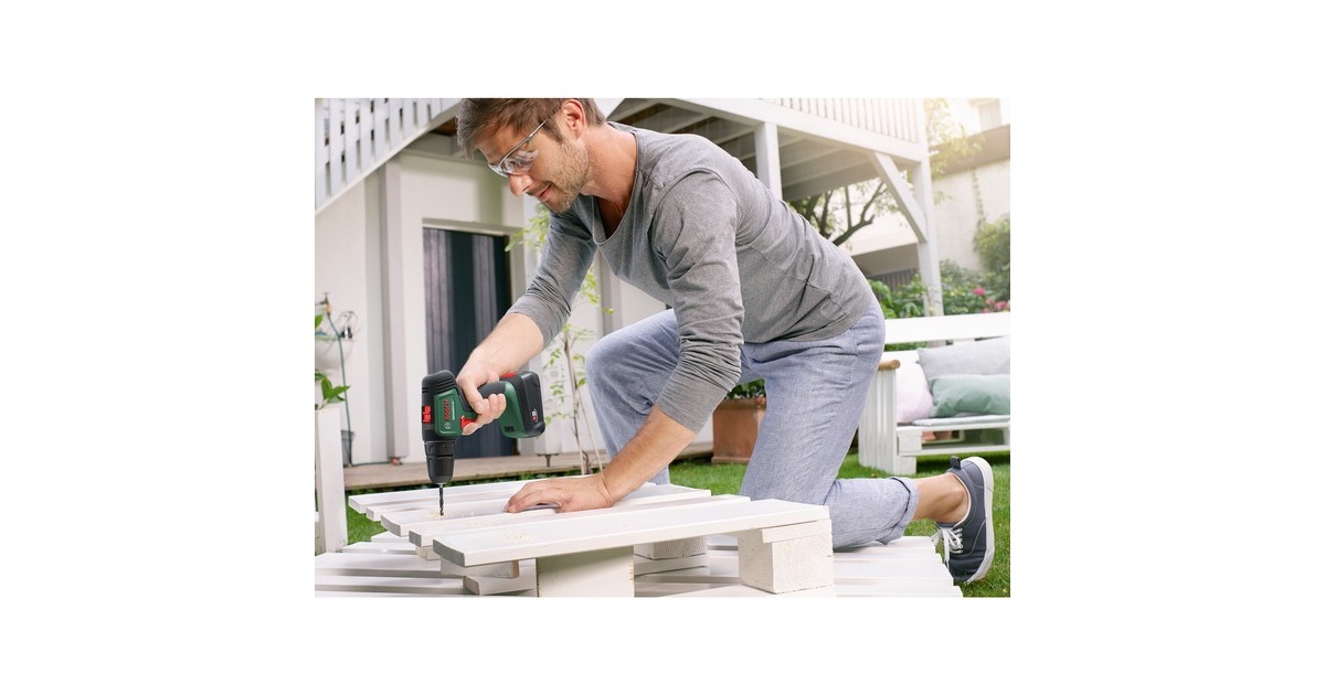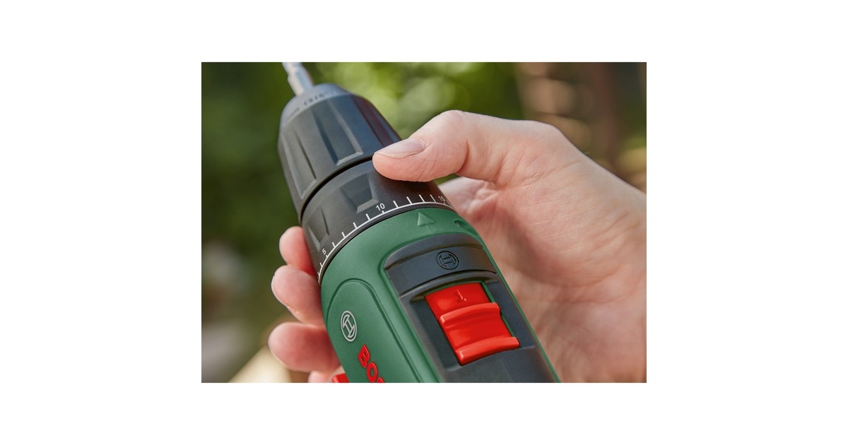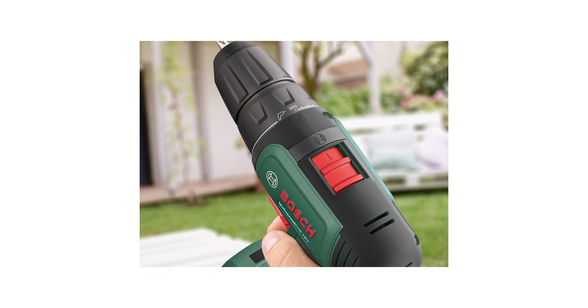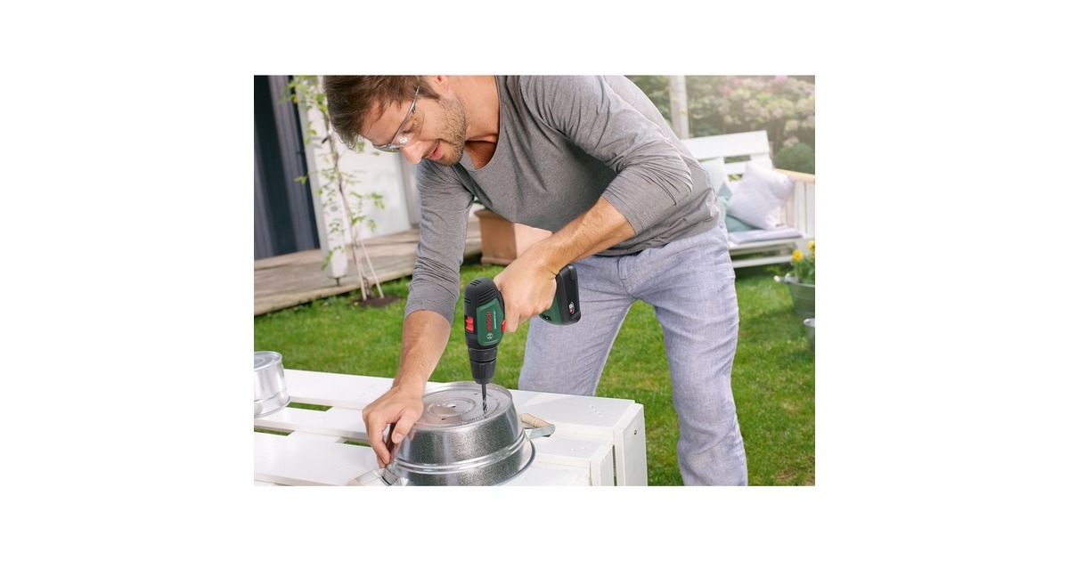 Der Akku-Bohrschrauber UniversalDrill 18V von Bosch ist sehr komfortabel und handlich. Das hilfreiche kabellose Werkzeug verfügt über ein 2-Gang-Planetengetriebe und 20 Drehmomentstufen plus Bohrstufe für optimales Drehmoment beim Schrauben und ideale Geschwindigkeit beim Bohren. Der langsame starke erste Gang ist ideal zum Schrauben und Bohren größerer Durchmesser, während der zweite Gang einen schnellen Bohrfortschritt bei kleinen Durchmessern ermöglicht. Dank des einhülsigen 10-mm-Bohrfutters mit Auto-Lock können die Bohrer und Schrauberbits mühelos gewechselt werden. Der kompakte Bohrschrauber mit ergonomischem Design ist außerdem mit einem eingebauten LED-Arbeitslicht ausgestattet, um die Sicht an dunklen Stellen zu erleichtern. Der Bohrschrauber UniversalDrill 18V ist der kompetente Allrounder für verschiedenste Bohr- und Schraubarbeiten in Holz, Metall und Kunststoff. Dank Lithium-Ionen-Technologie gibt es keinen Memory-Effekt und keine Selbstentladung, der Akku ist immer einsatzbereit.Art.-Nr.: 1826982