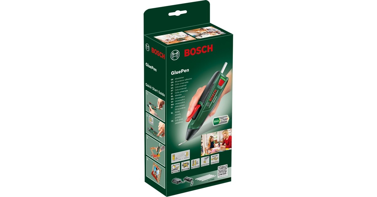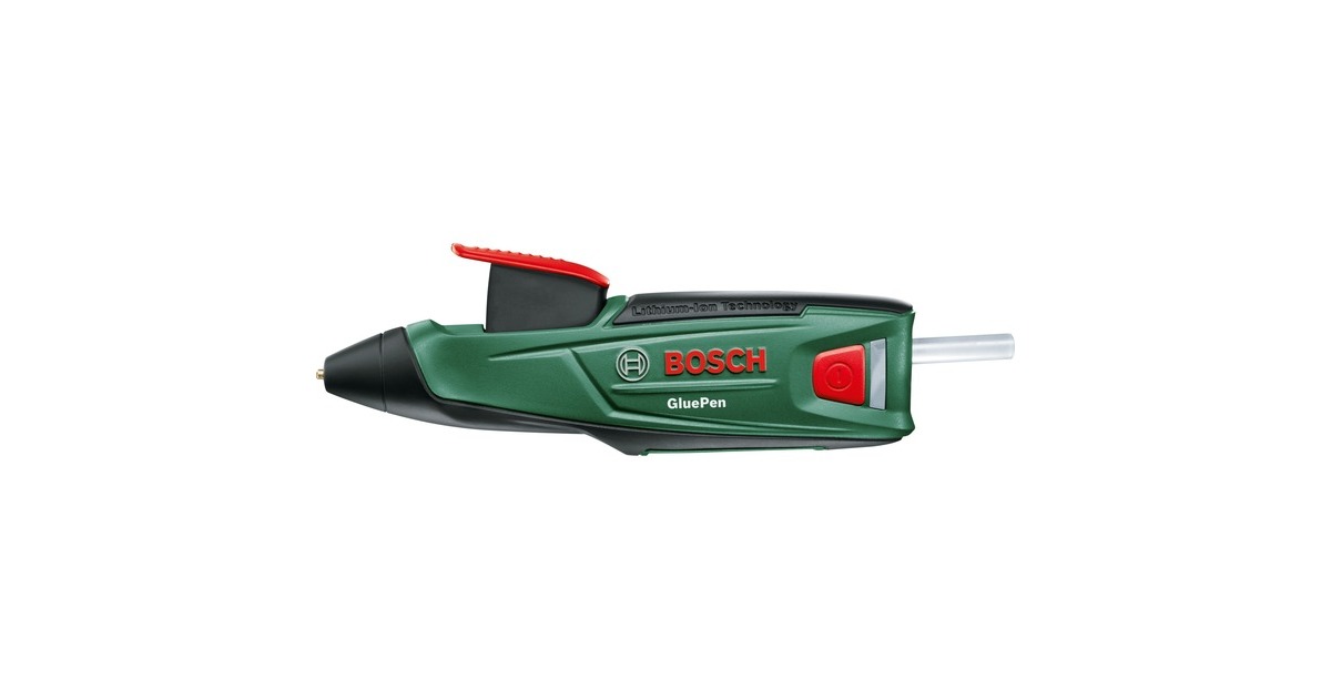 Mit der Bosch Akku-Klebepistole GluePen lassen sich dauerhafte Verbindungen herstellen. Maximale Flexibilität ermöglicht der kabellose Einsatz. Die Akkuklebepistole ist startklar zum Kleben nach nur 15 Sekunden Aufheizzeit. Holz, Kunststoff, Metall, Keramik, Glas, Textilien, Leder und vieles mehr. Zum Modellieren, Fixieren, Reparieren, Abdichten, Verfugen. Sie eignet sich für Klebesticks mit einer Länge ab 150mm. Eine Akkuladung reicht für bis zu sechs Klebesticks.Art.-Nr.: 1091996