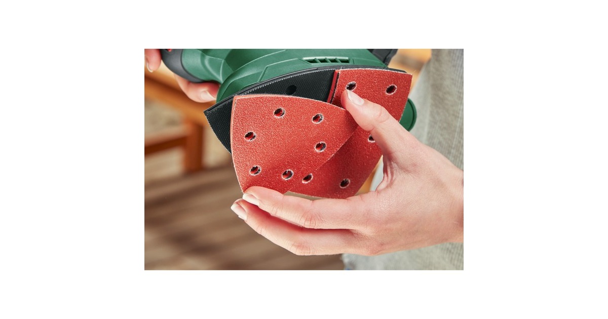 3 Schleifblätter, abnehmbare Microfilter-Staubbox |