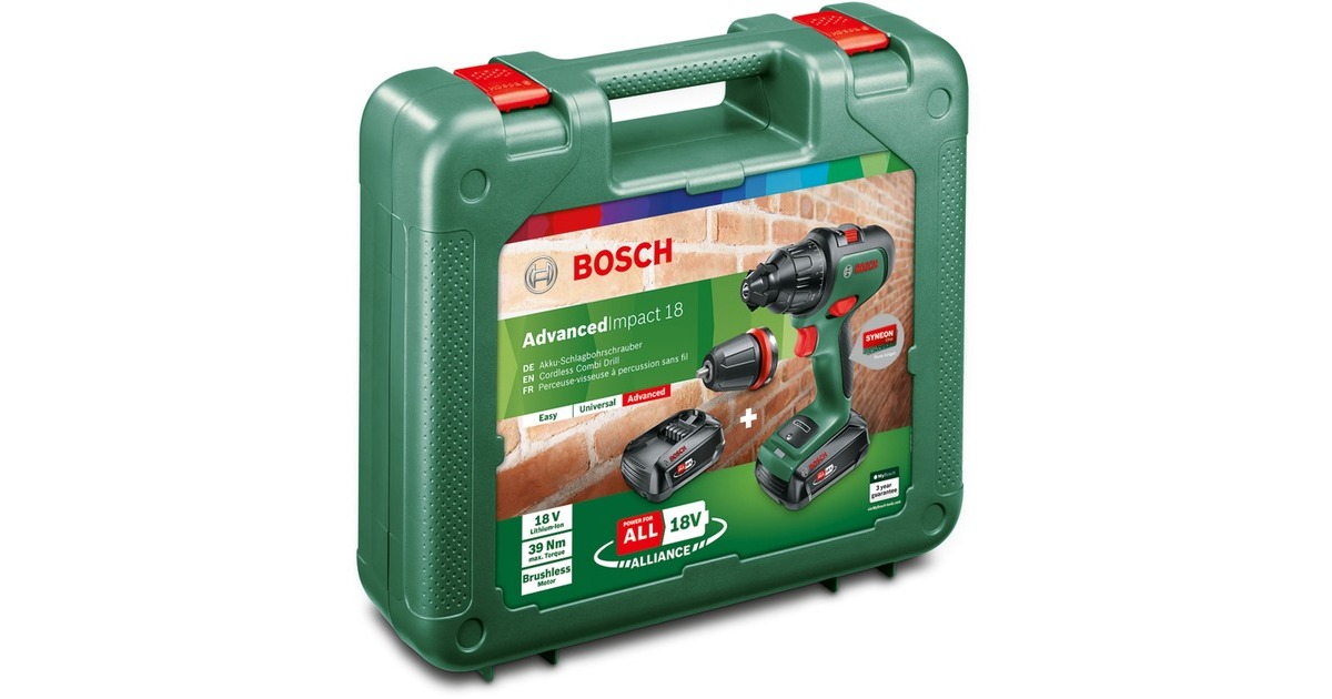 Transportkoffer, Schrauberbit, 2x Akku PBA 18V 1,5Ah, Ladegerät AL 1810 CV, Aufnahmeschaft für Bohrfutter |
