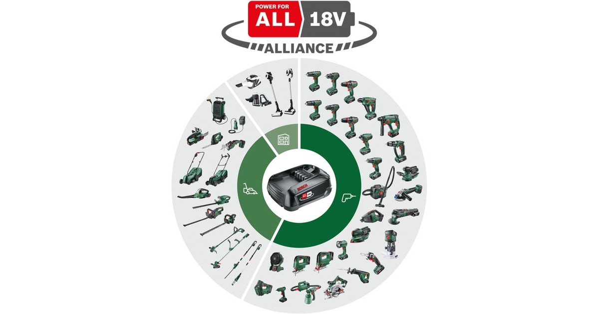 Ein Akku für alle - Die 18 Volt System Akkus der POWER FOR ALL ALLIANCE (P4A) basieren auf der Technologie von Bosch, können aber auch markenübergreifend mit zahlreichen weiteren Produkten anderer Hersteller aus der Allianz verwendet werden. Ein Akku für alle Geräte - die POWER FOR ALL ALLIANCE ist eine der größten markenübergreifenden Akku-Allianzen führender Hersteller weltweit und bietet Lösungen für das ganze Zuhause. |