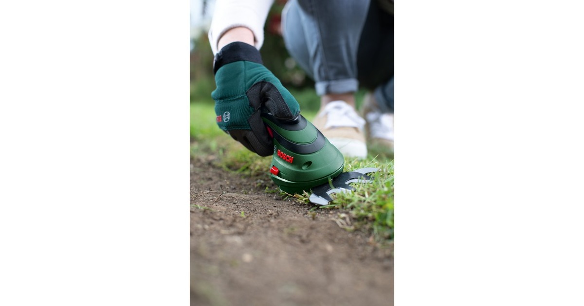 Das Akku-Strauch und Grasscheren-Set Isio besteht aus dem Hauptgerät, einem Multi-click-Grasscherblatt und einem Multi-click-Strauchscherenmesser. Das kabellose Gerät ist ein unentbehrliche Helfer im Garten und eignet sich perfekt zum Formen von Büschen und Sträuchern sowie zum Schneiden von Rasenkanten. Der langlebige 3,6 Volt Lithium-Ionen-Akku ist jederzeit einsatzbereit mit bis zu 50 Minuten Laufzeit. Das leichte und ergonomische Design bietet viel Komfort und erlaubt müheloses Schneiden. Der leistungsstarke Antrieb und das Anti-Blockier-System sorgen für eine nahezu blockierfreie Schnittleistung.Art.-Nr.: 1827806