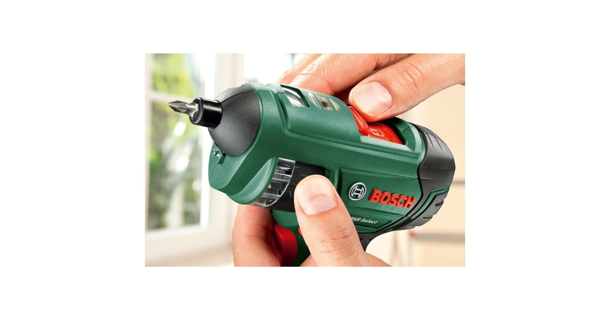 Der Bosch Akkuschrauber PSR Select ist ein kleiner praktischer Helfer bei Schraubarbeiten im Haushalt. Mit der Li-Ion-Technologie gibt es keinen Memory-Effekt und keine Selbstentladung. Bosch EasySelect sorgt für einfachen Bit-Wechsel im Handumdrehen: Der Akku-Schrauber verfügt über eine integrierte Trommel, die 12 Standard-Bits enthält. Zum Wechseln dreht man diese so lange, bis der gewünschte Bit im Sichtfenster erscheint und schiebt diesen dann in den Bit-Halter nach vorne durch. Welches Schrauberbit durch das Drehen der Bit-Trommel ausgewählt wurde, lässt sich ganz leicht über das beleuchtete Sichtfenster erkennen. Dunklere Arbeitsbereiche sind kein Problem, denn die leuchtstarke LED bringt Licht auch in die dunkelsten Ecken. Zwei Leuchtdioden auf der Oberseite des Akkuschraubers zeigen stets die gewählte Drehrichtung an. Der PSR Select verfügt über eine automatische Spindelarretierung. Sie ermöglicht auch ein manuelles Festziehen oder Lösen von Schrauben. Außerdem vereinfacht die Arretierung den Wechsel der Schrauberbits. Der magnetische Bit-Halter sorgt dafür, dass der eingesetzte Bit an seiner Position bleibt.Art.-Nr.: 1545584