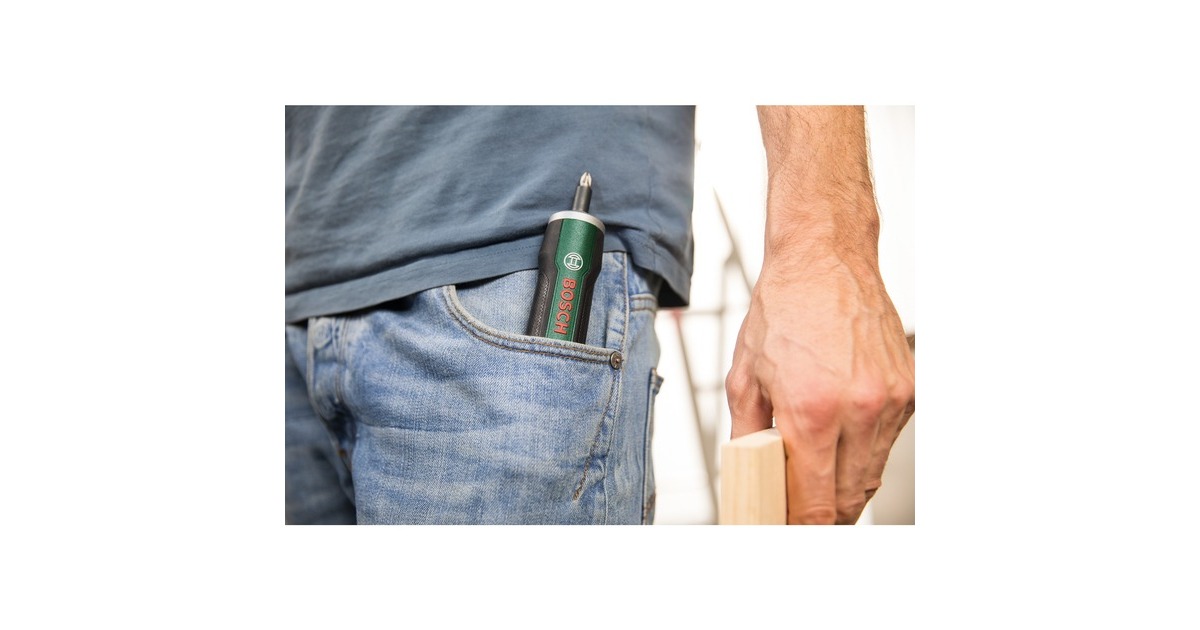 Der Akkuschrauber PushDrive von Bosch ist ein kompakter Akku-Stabschrauber, der in die Hosentasche passt. Dank der Push&Go-Funktion müssen keine Schalter gedrückt werden: Ein leichter Druck auf die Schraube genügt, um das Gerät automatisch zu starten. Mit dieser Funktion ist die Arbeit sogar noch schneller erledigt. Die Drehmomentvorwahl ermöglicht die genaue Kontrolle über die eingesetzte Kraft, mit dem Drehrad für die Vorwahl des Anziehdrehmoments lässt sich der Akkuschrauber bequem einstellen. Natürlich verfügt er auch über einen Wahlschalter für Rechts- und Linkslauf. Zusätzlich zum Ein- und Ausschrauben eignet sich der Schrauber bei verriegelter Nullstellung mit arretierter Bit-Aufnahme für eine genaue manuelle Feinjustierung der Schrauben. Der extrem leichte und kompakte PushDrive ist immer griffbereit.Art.-Nr.: 1901840