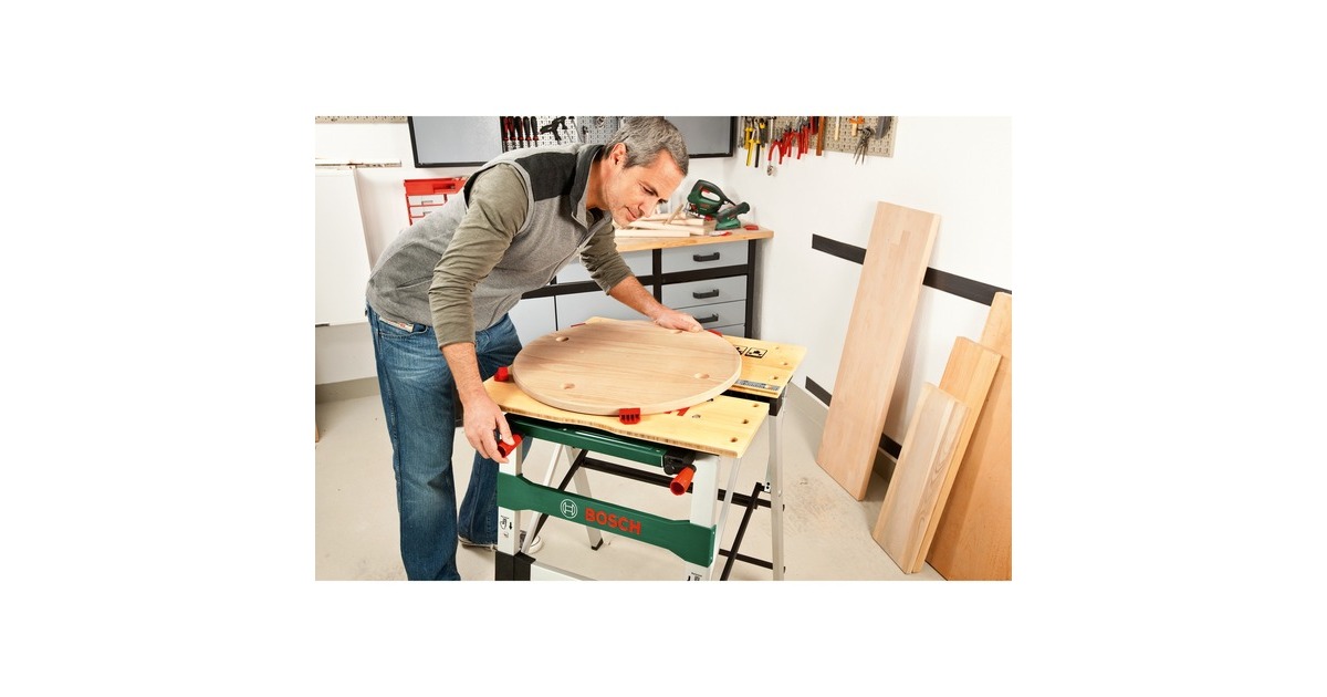 Der Bosch Arbeitstisch PWB 600 ist flexibel und bietet sicheres Arbeiten. Er lässt sich in Sekunden ohne Werkzeug aufstellen und zusammenklappen. Die robuste Arbeitsfläche aus Bambus-Holz mit integrierter Ablage eignet sich für vielseitige Anwendungen. Mit den flexiblen Spannbacken lassen sich sowohl runde als auch sperrige Werkstücke sicher fixierenArt.-Nr.: 1039722