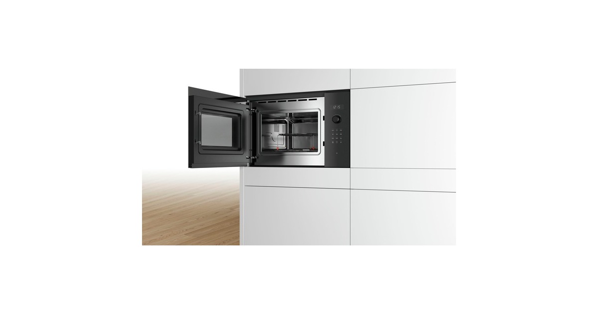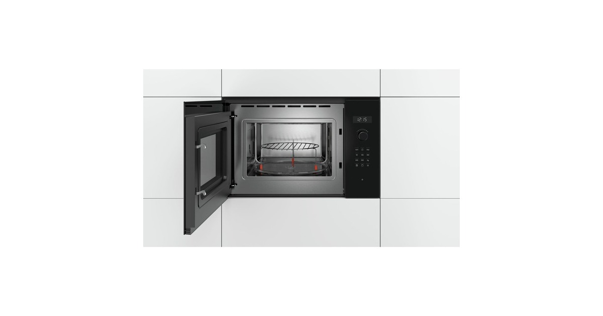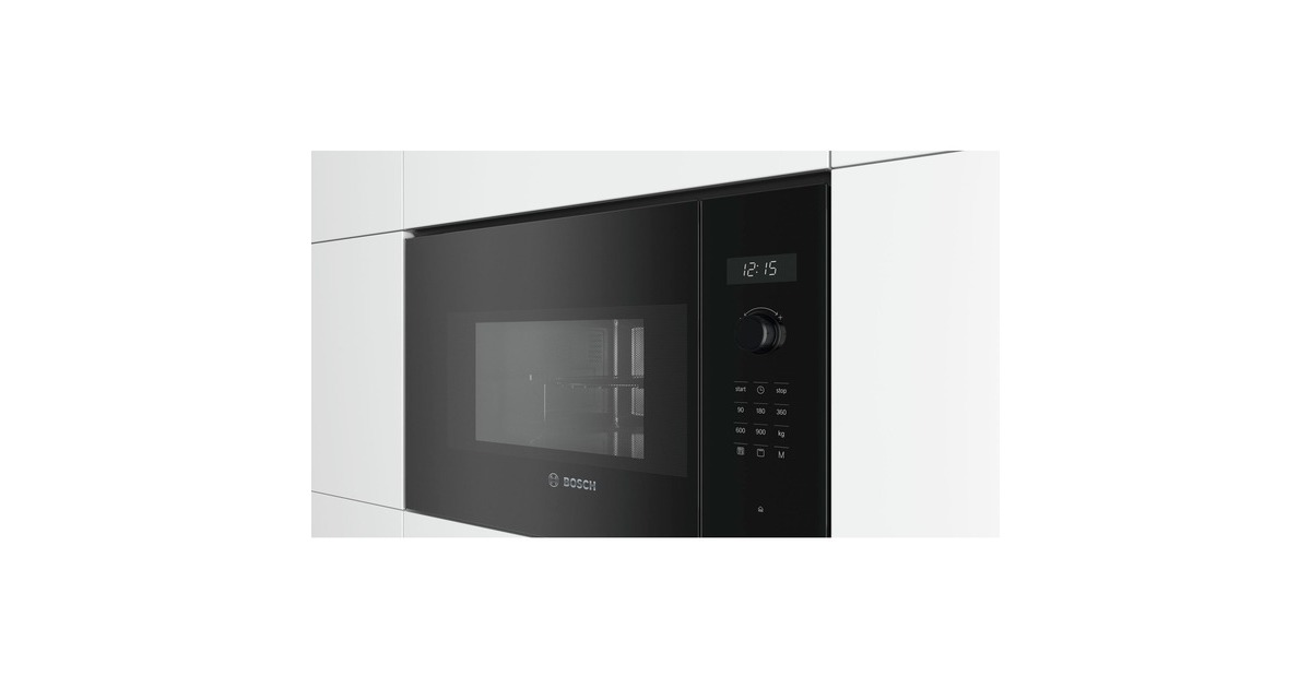 Die Einbau-Mikrowelle Bosch BEL554MB0 mit Grillfunktion überzeugt mit schickem Design und umfangreichen Funktionen. Die Bosch BEL554MB0 bietet 25 Liter Garraumvolumen. Die Mikrowelle verfügt über eine Leistung von 900 Watt und der Grill über 1200 Watt. Über den intuitiven Bedienring lassen sich vier Leistungsstufen einstellen und mit 8 Automatikprogrammen bleiben für den Anwender keine Wünsche mehr offen. Daneben verfügt die BEL554MB0 über eine LED-Innenbeleuchtung und durch das Sichtfenster bleibt das Gargut immer gut im Blick. In puncto Sicherheit bietet die BEL554MB0 zudem eine Sicherheitsabschaltung und ein Kühlgebläse.Art.-Nr.: 1384586
