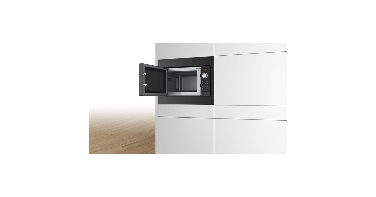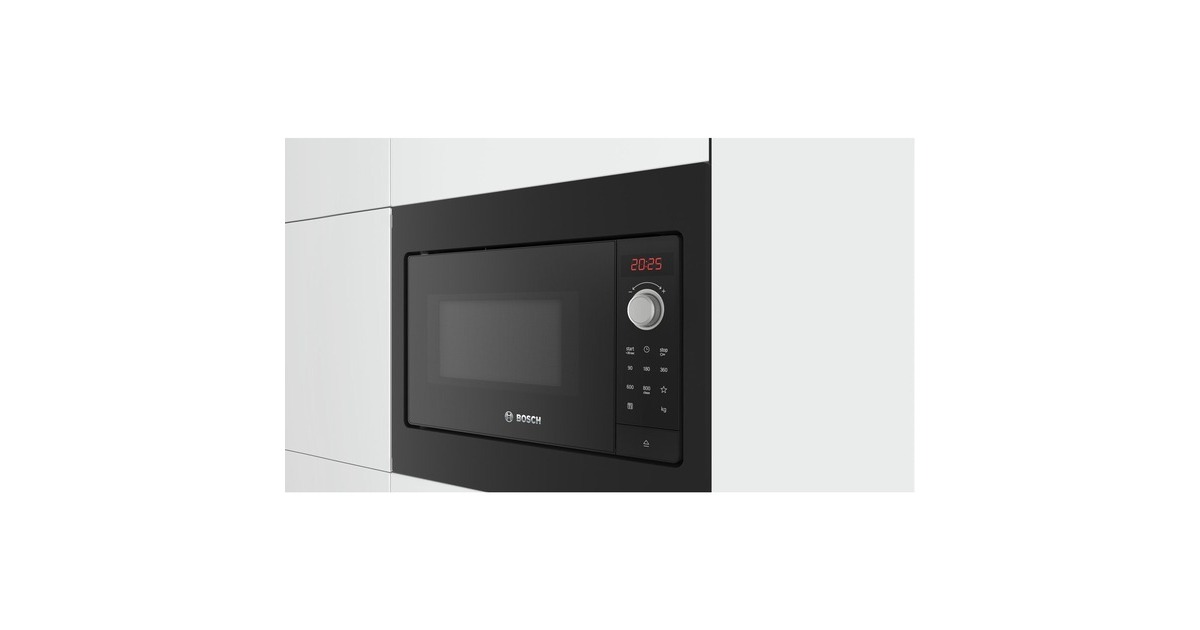 Die Einbau-Mikrowelle Bosch BFL523MB3 überzeugt mit schickem Design und umfangreichen Funktionen. Die Bosch BFL523MB3 bietet 20 Liter Garraumvolumen und verfügt über eine Leistung von 800 Watt. Über den intuitiven Bedienknebel lassen sich fünf Leistungsstufen einstellen und mit 7 Automatikprogrammen bleiben für den Anwender keine Wünsche mehr offen. Daneben verfügt die BFL523MB3 über eine LED-Innenbeleuchtung und durch das Sichtfenster bleibt das Gargut immer im Blick. In puncto Sicherheit bietet die BFL523MB3 zudem eine Sicherheitsabschaltung und ein Kühlgebläse.Art.-Nr.: 1830033