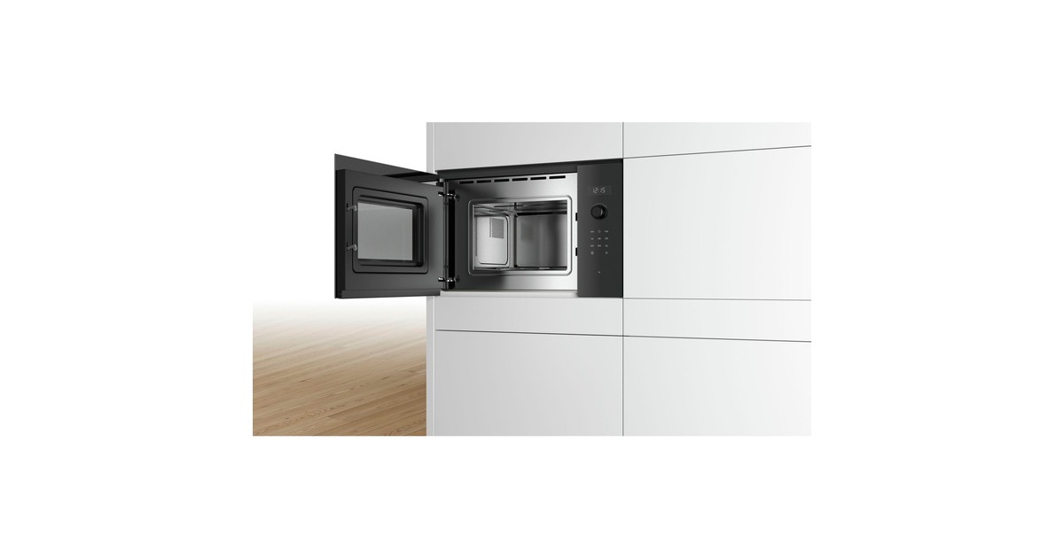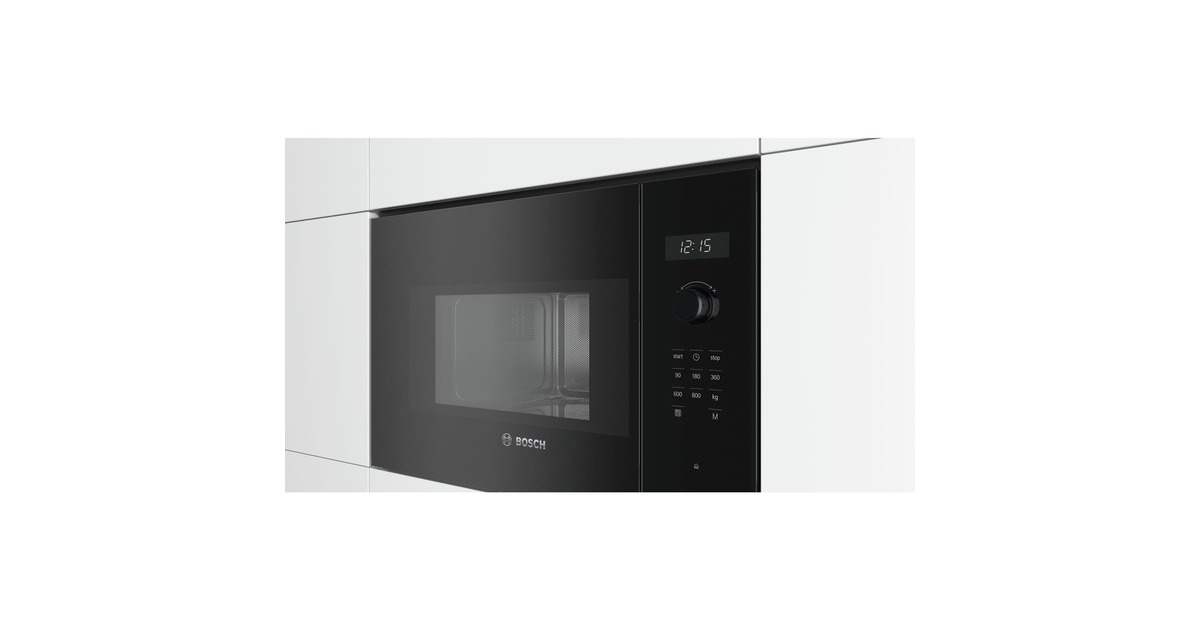 Die Einbau-Mikrowelle Bosch BFL524MB0 überzeugt mit schickem Design und umfangreichen Funktionen. Die Bosch BFL524MB0 bietet 20 Liter Garraumvolumen und verfügt über eine Leistung von 800 Watt. Über den intuitiven Bedienring lassen sich fünf Leistungsstufen einstellen und mit 7 Automatikprogrammen bleiben für den Anwender keine Wünsche mehr offen. Daneben verfügt die BFL524MB0 über eine LED-Innenbeleuchtung und durch das Sichtfenster bleibt das Gargut immer gut im Blick. In puncto Sicherheit bietet die BFL524MB0 zudem eine Sicherheitsabschaltung und ein Kühlgebläse.Art.-Nr.: 1384582