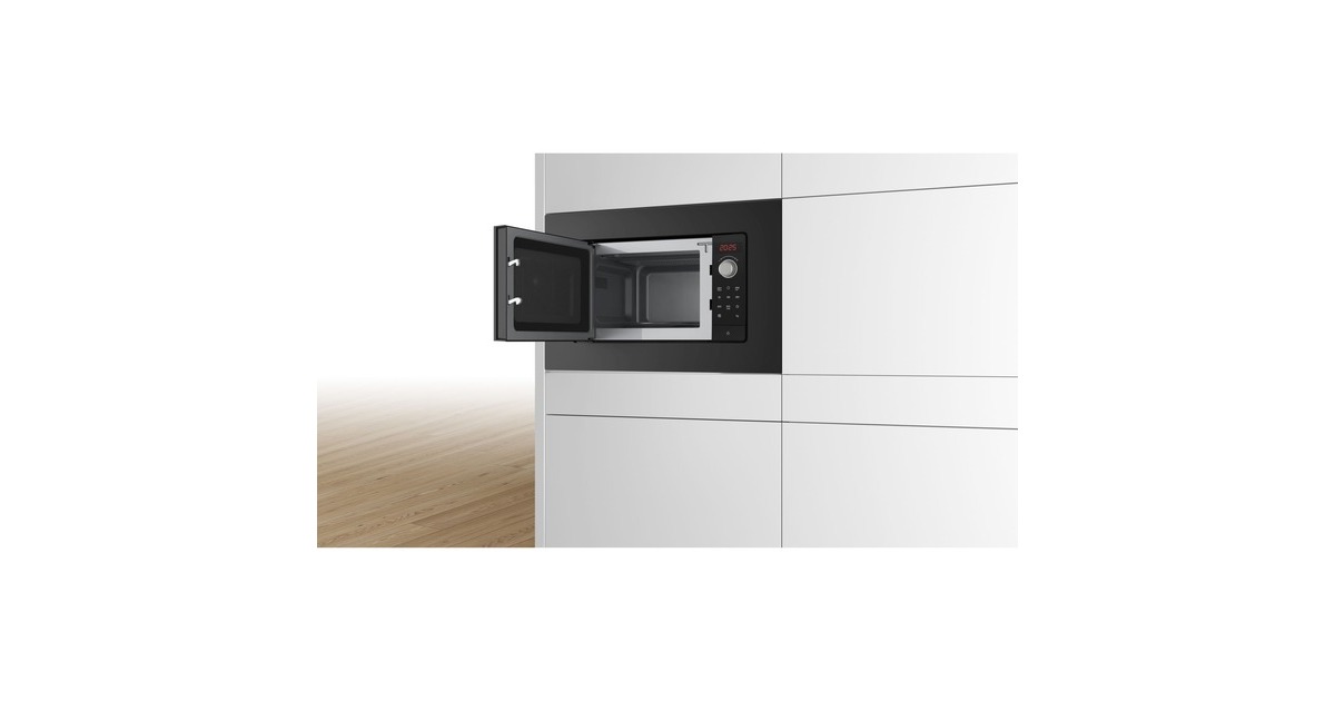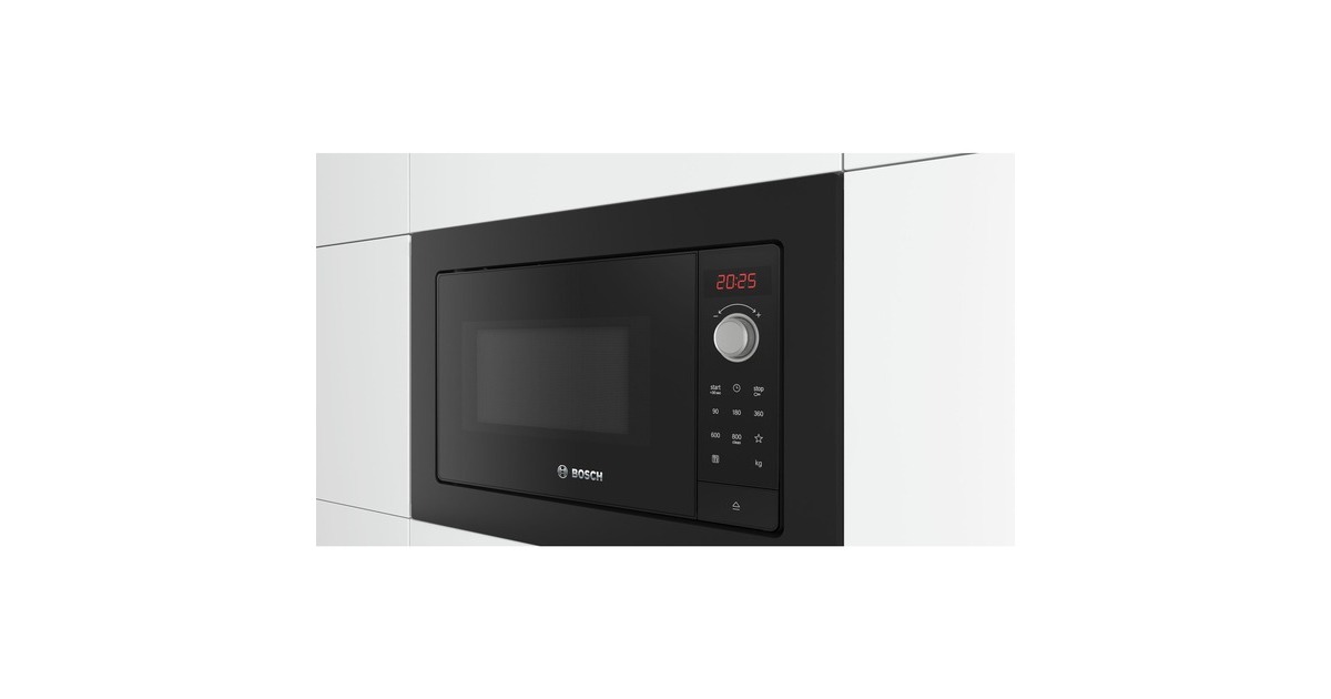 Die Einbau-Mikrowelle Bosch BFL623MB3 überzeugt mit schickem Design und umfangreichen Funktionen. Die Bosch BFL623MB3 bietet 20 Liter Garraumvolumen und verfügt über eine Leistung von 800 Watt. Über den intuitiven Bedienknebel lassen sich fünf Leistungsstufen einstellen und mit 7 Automatikprogrammen bleiben für den Anwender keine Wünsche mehr offen. Daneben verfügt die BFL623MB3 über eine LED-Innenbeleuchtung und durch das Sichtfenster bleibt das Gargut immer im Blick. In puncto Sicherheit bietet die BFL623MB3 zudem eine Sicherheitsabschaltung und ein Kühlgebläse.Art.-Nr.: 1830035